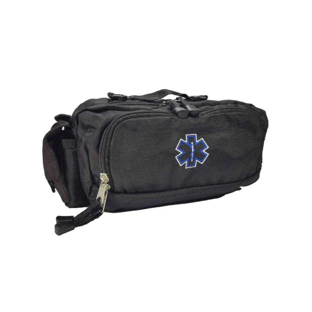 Deluxe First Aid Nylon Star of Life Logo Fanny Pack EMT Paramedic Bag With Internal Pockets - Black