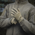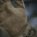 The M-Tac's Scout Tactical Gloves have a continuous stretch panel between the fingers and the elastic cuffs that provides a snug fit and flexible don & doffing of the gloves. Genuine leather wrapped around the palm and thumb with the index finger provides increased protection and better wear when handling the tools. Hands' skin stay cool and dry with sweat-wicking technology around the wrist and fingers.