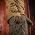 These are durable, elastic Softshell gloves, resistant to weathering (protection from wind, snow, and light rain). They are suitable for all types of outdoor activities in the cool season. They have a lot of applications in a variety of conditions. Working with firearms, practical shooting, countryside walks or everyday use in the city, work on the camp - everything will be possible with the M-Tac Soft Shell Thinsulate gloves. The Thinsulate is a unique technology that combines the highest degree of cold protection and excellent breathability. Due to the outer material, they perfectly protect from wind, snow, or moisture, and, at the same time, the gloves dry quickly. The palm area is additionally enhanced with leather to prevent premature wear, improve grip and prevent slipping. The Touch Screen overlay on the index finger will allow you to use the touch screens of smartphones, GPS navigators, and tablets without removing gloves.