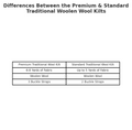 These premium wool kilts use a medium-heavy woolen wool, typically in the 14–16 oz range depending on the weave. Woolen wool has a slightly rougher texture than worsted wool, but it still provides rich, traditional color along with excellent swing and drape. This fabric is known for being hardy and reliable, making it a great choice for consistent wear, cultural events, and anyone wanting a long-lasting traditional kilt.