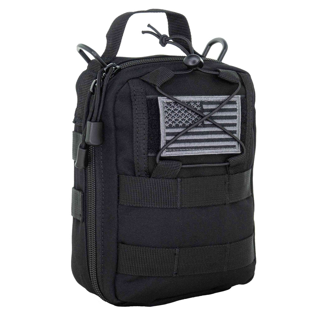 MOLLE Pouch, Emergency Medical, Trauma Bag, Gunshot Bag for First Aid (IFAK), Utility Pouch, includes USA Patch - Black