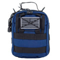 The LINE2design MOLLE first aid bag is made with a specialized, first of a kind material with a PVC inner lining.  The MOLLE bag includes a         2” x 3 ¼” interchangeable USA flag patch. The bag comes in four color choices: black, navy, red or orange. Our MOLLE bags features strong webbing loops that are ideal for attaching and securing gear.  The interior has elastic cording with two drawstring clasps, 8 interior elastic storage loops, an enclosed zippered pocket, a mesh pocket, and a top handle with two D-Ring accessory loops. The LINE2design MOLLE bag is the perfect bag for first responders, police, tactical medics, military, survivalists, hikers, hunters and individuals. This MOLLE bag is also great to keep at your desk for emergency situations, when you need to stop bleeding fast. Molle Bag Size:  8” x 6.5“x 3"