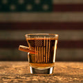 Handcrafted with care, this unique shot glass features a real, lead-free .308 bullet embedded into the glass, adding a rugged charm that makes it perfect for any gathering. The custom laser-etched design showcases a distressed American Flag, making it ideal for barbecues, parties, or any occasion where friends gather to celebrate.