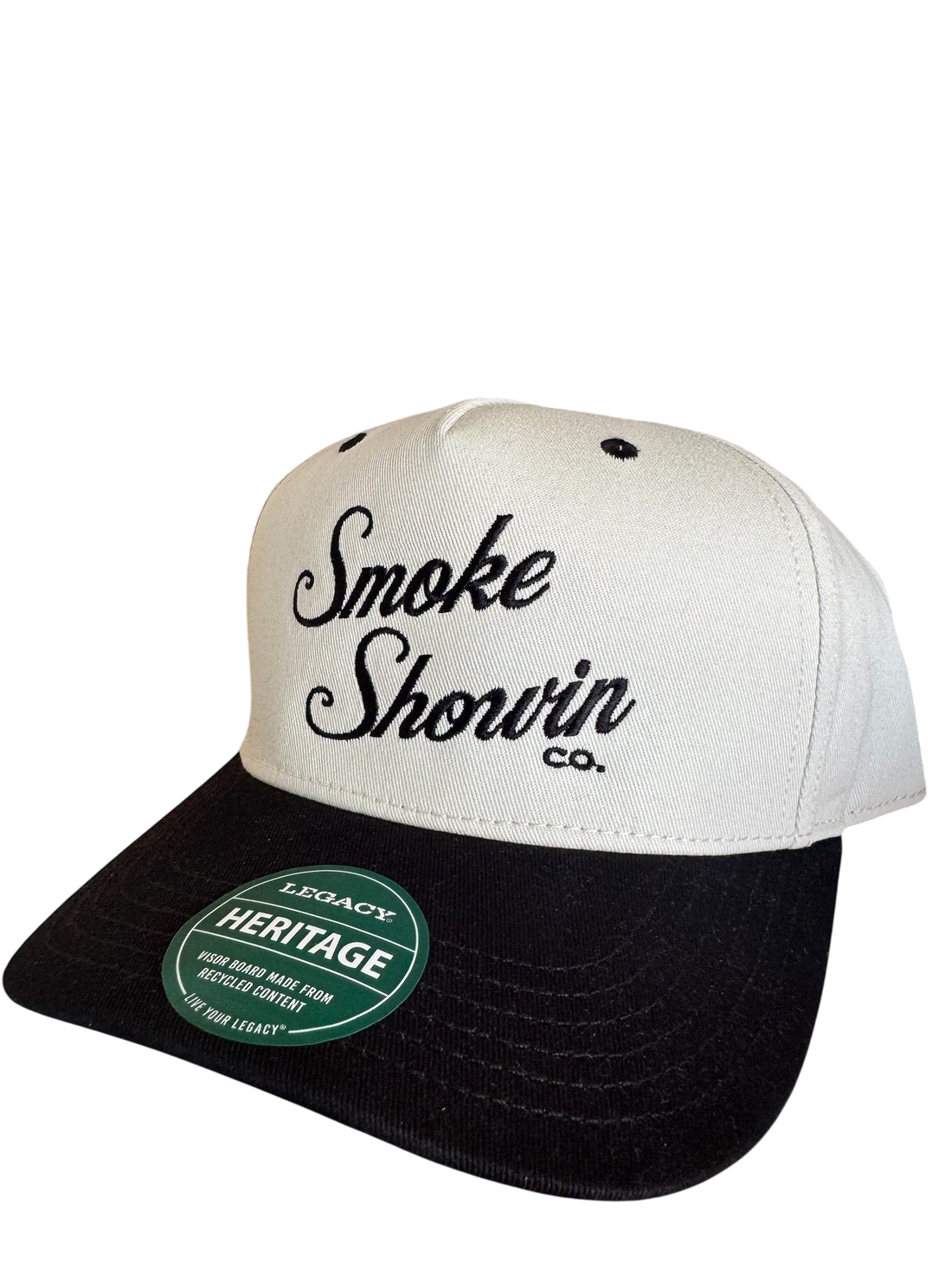 The Legacy Script Hat features a classic tan script embroidered on a black snapback, blending...