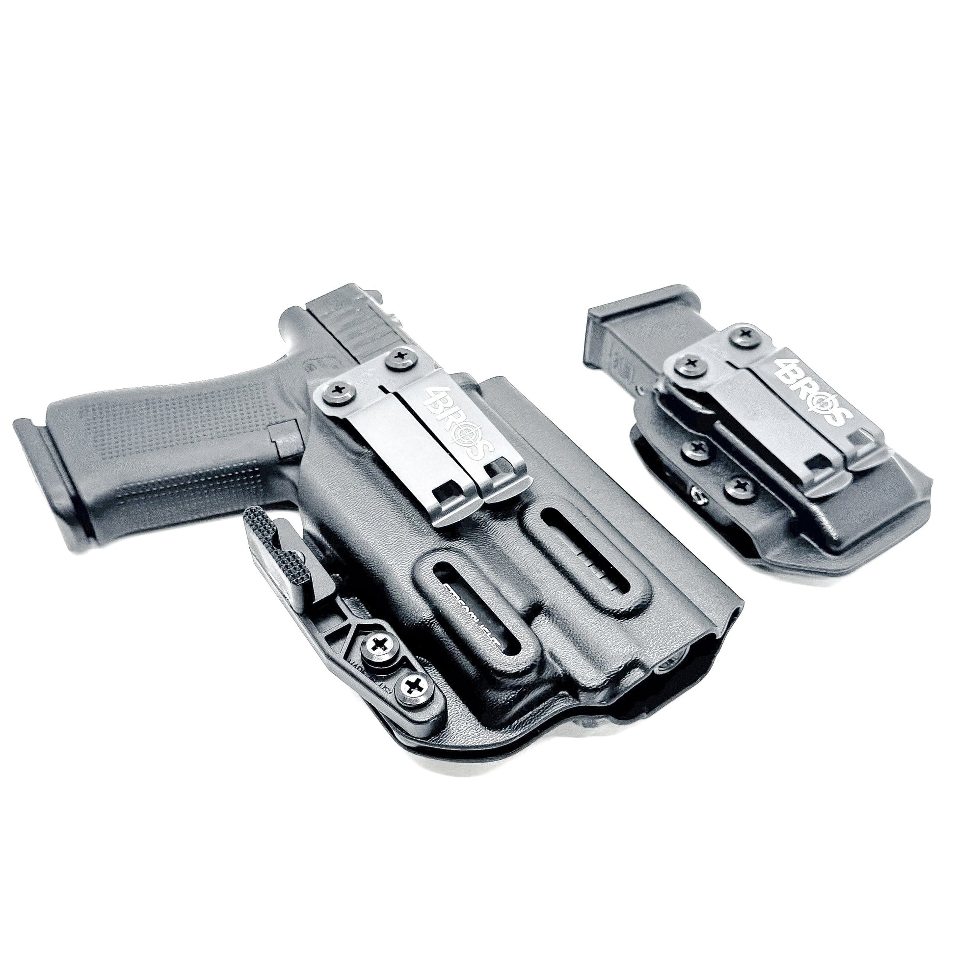 This is our Right-Hand combination package for customers looking for an Inside Waistband Holster designed to fit the Glock 43X MOS, 48 MOS, 43X Rail, and 48 Rail pistols with the Streamlight GL Version of the TLR-7 Sub light mounted to the handgun and a Glock 43X & 48 Inside Waistband Magazine Carrier.