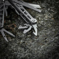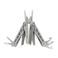 Going fishing, hiking, or picnic? Take with you M-Tac's Type 3 multitool. It's equipped with all the necessary tools that may be needed both in everyday life and during active outdoor recreation. Made of 402 stainless steel, it allows maximum durability, even with active use in field conditions. The multitool has many useful tools: knife, pliers, screwdriver, can-opener, bottle-opener, sling cutter, hacksaw, file, scissors, and awl. All elements are tightly fixed in the open and closed positions. Due to its ergonomic shape, the multitool fits perfectly in the hand and doesn't slip while working. It has a special cover that can be attached to the equipment with a sling. Also, the multitool fits well in a bag or backpack without taking up a lot of space.