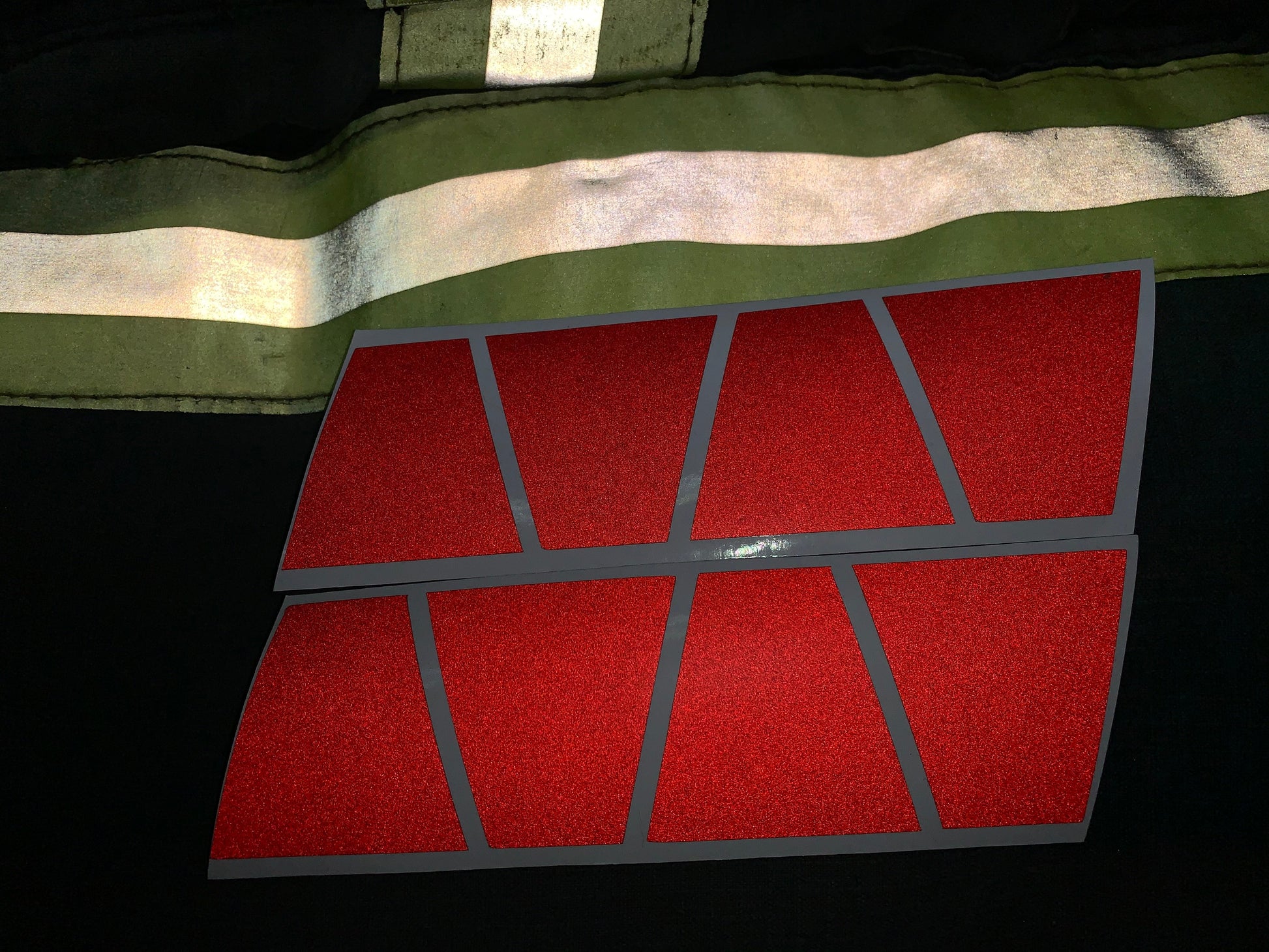 These decals are made of 3M premium reflective vinyl specifically designed for this type of application. Inks used are Eco-friendly