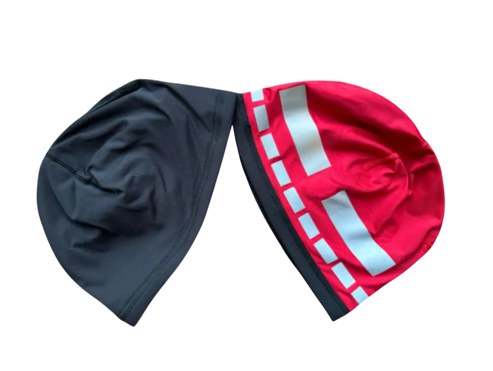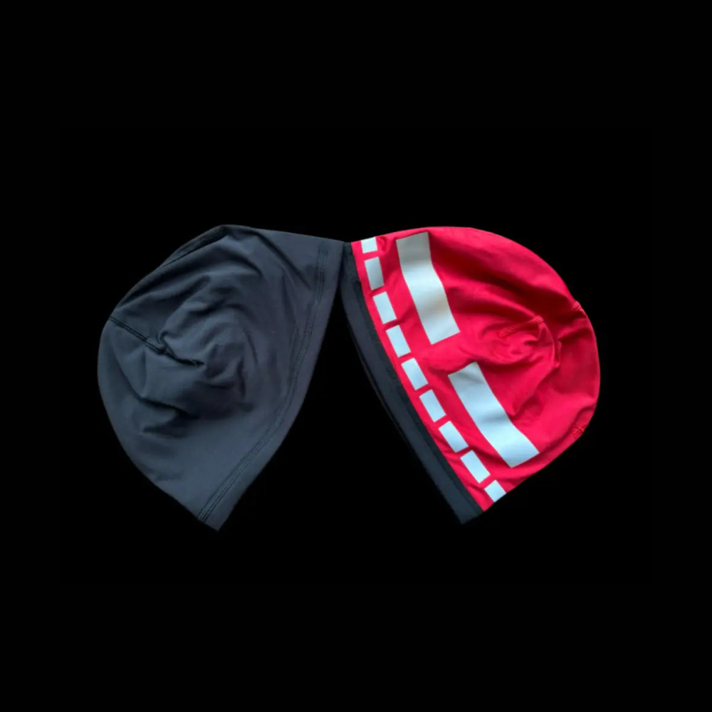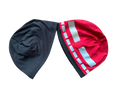 Reversible beanie with reinforced stitching. New high quality reflective material to prevent cracking.