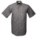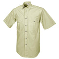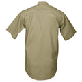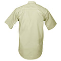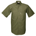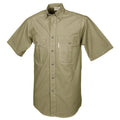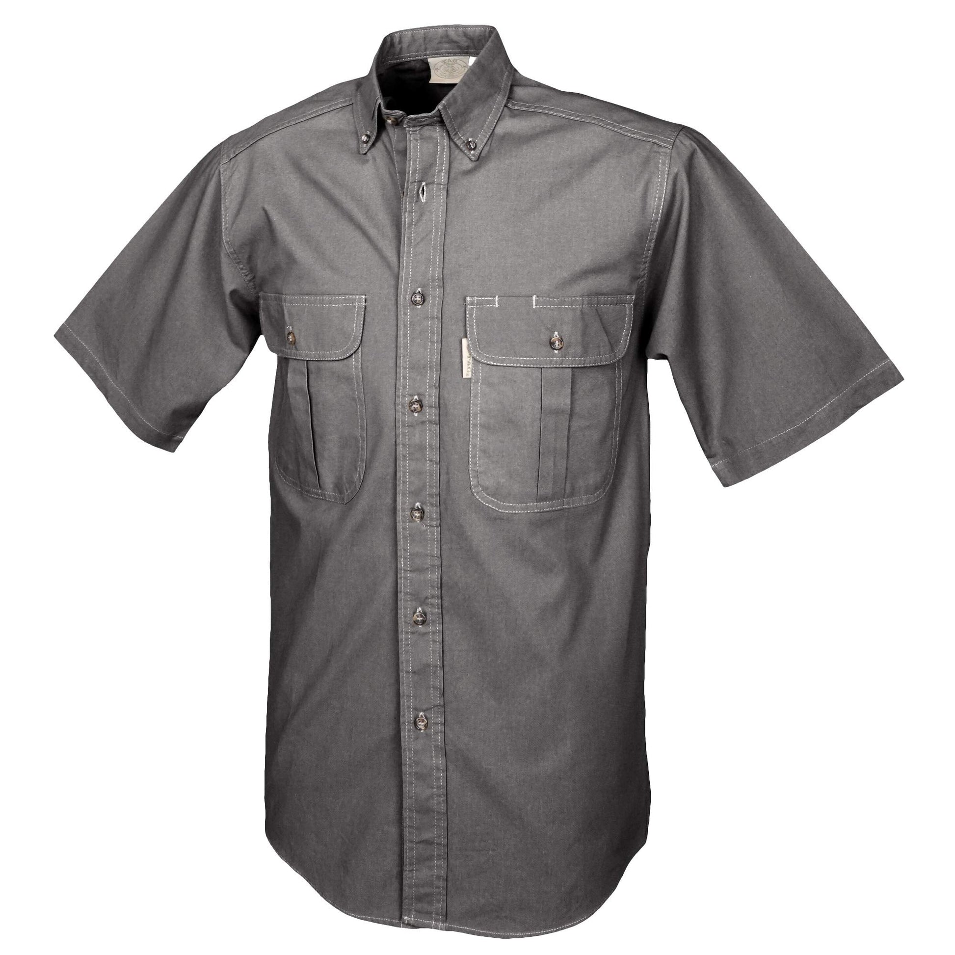 Safari Shirt for men in short sleeves is a versatile outdoor shirt that will serve as a work shirt on the ranch, a casual shirt around town, or a hunting shirt when exploring the Veldt on your African adventure. Two chest pockets with button down flaps carry essential outdoor gear. Button down collars stop the wind from blowing collar points in your face. Double stitched throughout for durability, with generous sizing and back shoulder tucks for freedom of movement. Made in Africa from 5 1/2 ounce cotton that has been pre-washed and pigment dyed for a natural worn look. This men's short sleeved safari shirt is an outdoor classic that is both simple and elegant at the same time.