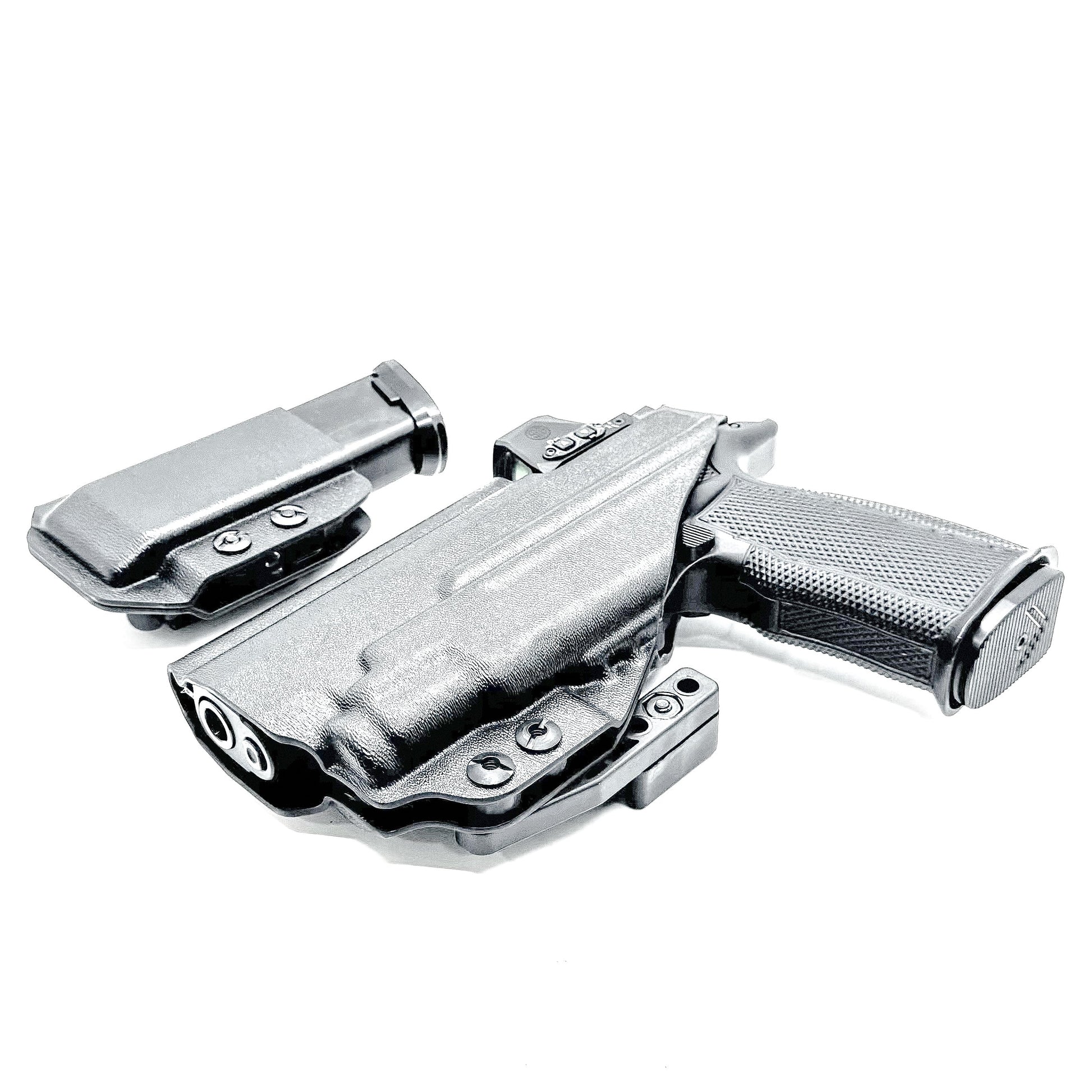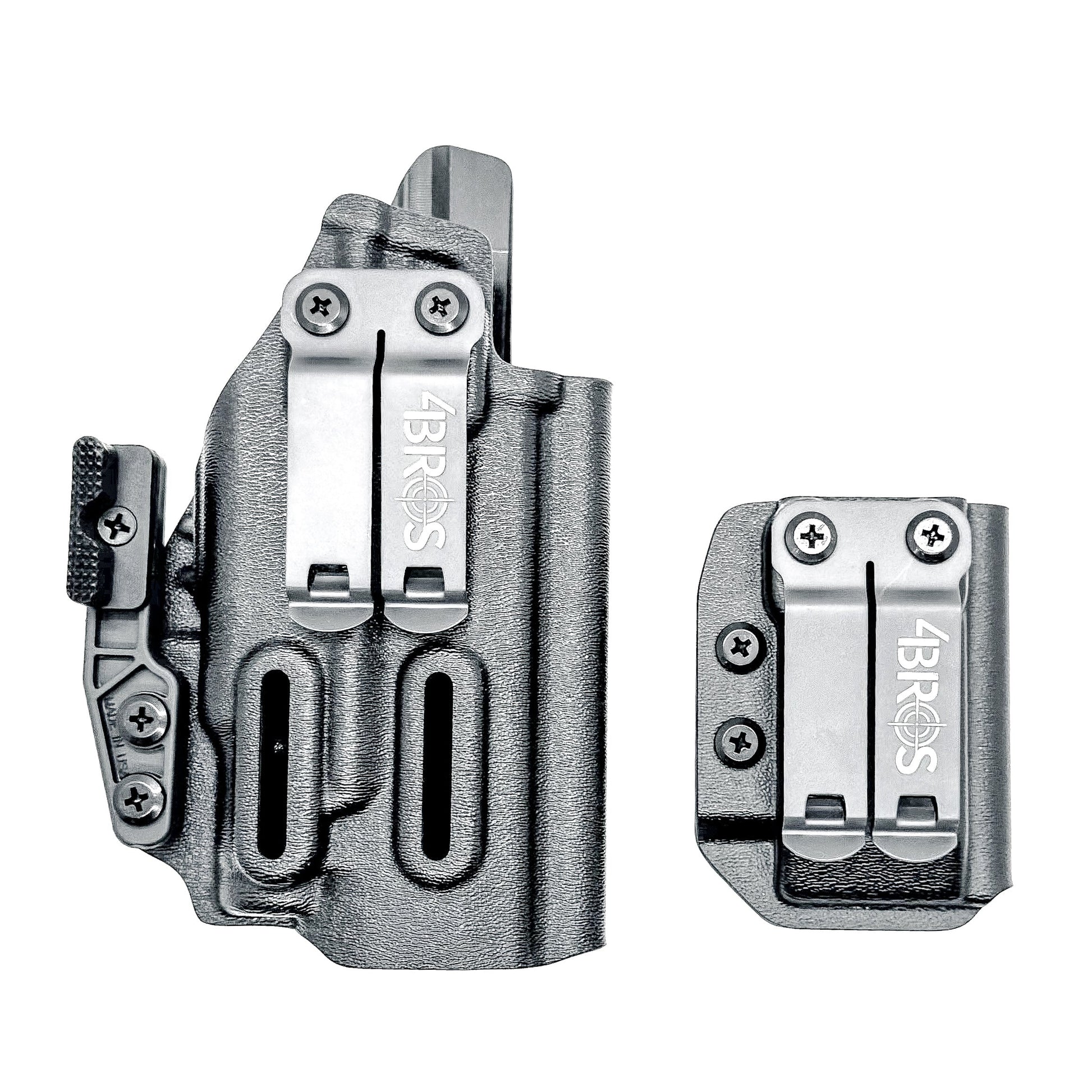 - Optional Modwing includes 2 inserts to allow the user to adjust the amount of leverage placed against the inside of the belt to reduce firearm printing. The location of the Modwing provides room for your fingers when drawing the pistol.