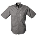 Trail Shirt for men in short sleeves with the Tag buffalo logo embroidered on the left side, is a classic outdoor shirt and perfect for hiking the African savanna. Two chest pockets with button down flaps carry essential outdoor gear. Functional cross-stitched epaulettes prevent a camera or water canteen from slipping off your shoulder. Button down collars stop the wind from blowing collar points in your face. A double layered back yolk gives extra sun protection while two back tucks allow extra shoulder swing. Double stitched throughout for durability, with generous sizing and long tails that stay tucked in. Made in Africa from pre-washed and pigment dyed 5 1/2 ounce cotton for a natural worn look. This mens short sleeved safari trail shirt with the Tag Safari Buffalo logo will be a welcome travel companion on any adventure.