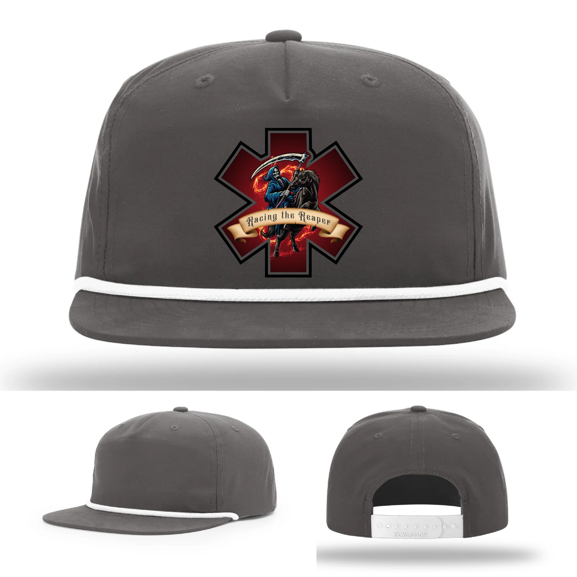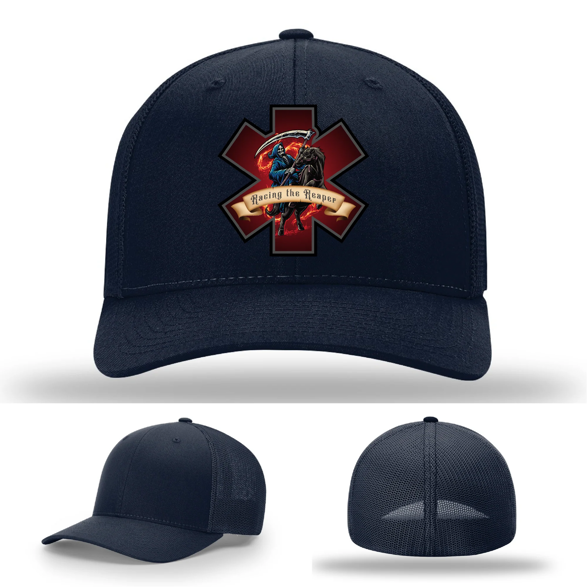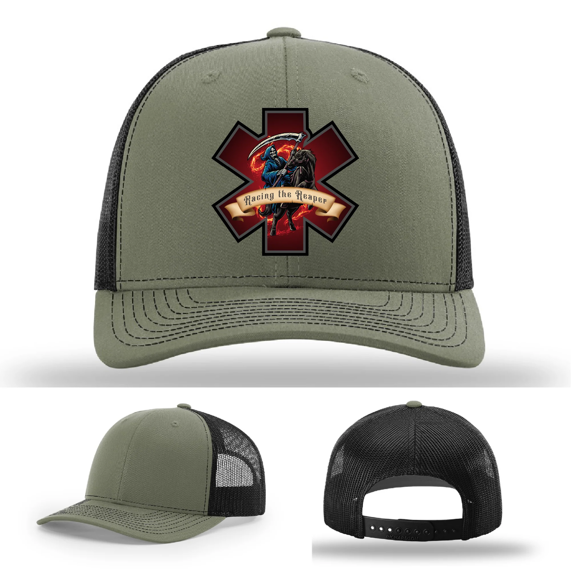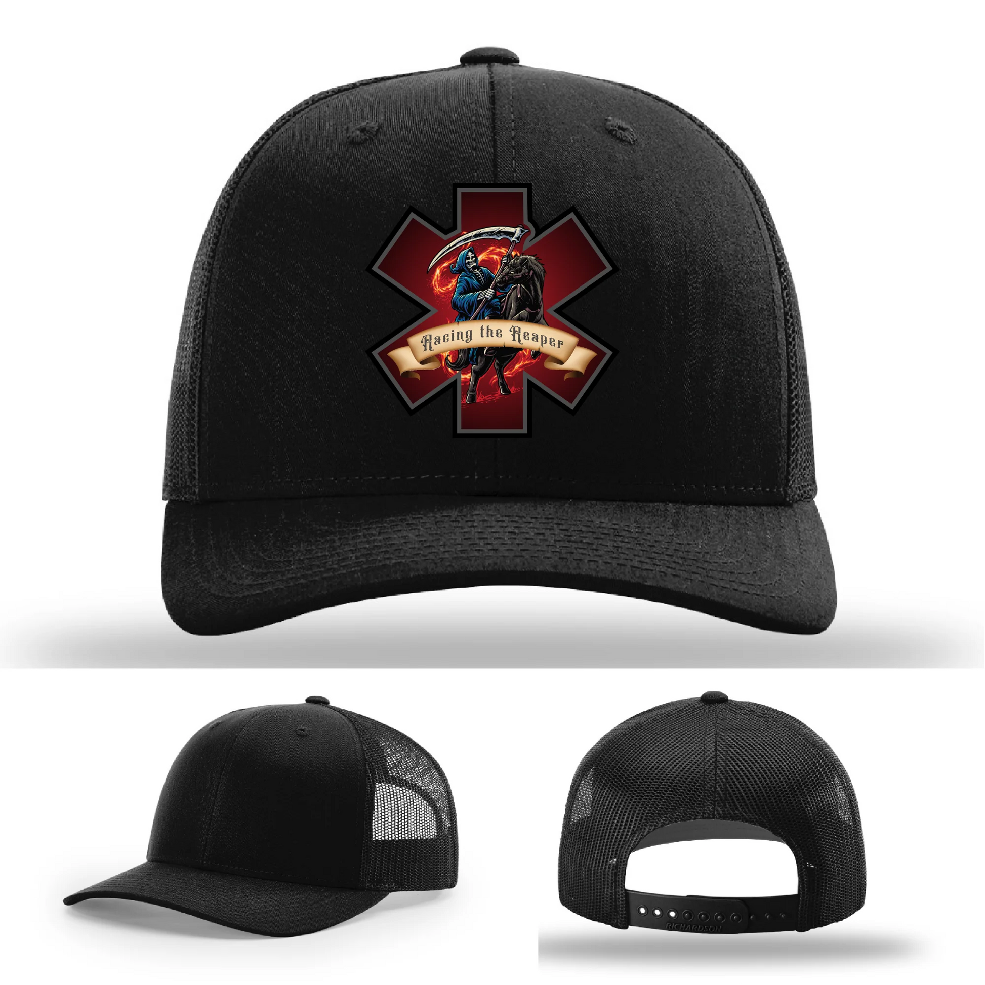 You’ve raced the Reaper more times than you can count—and won. This EMS Reaper leather patch hat is for the medics who never back down. Featuring a full-color reaper design with the Star of Life front and center, it’s made for EMTs, paramedics, and first responders who don’t flinch at chaos.