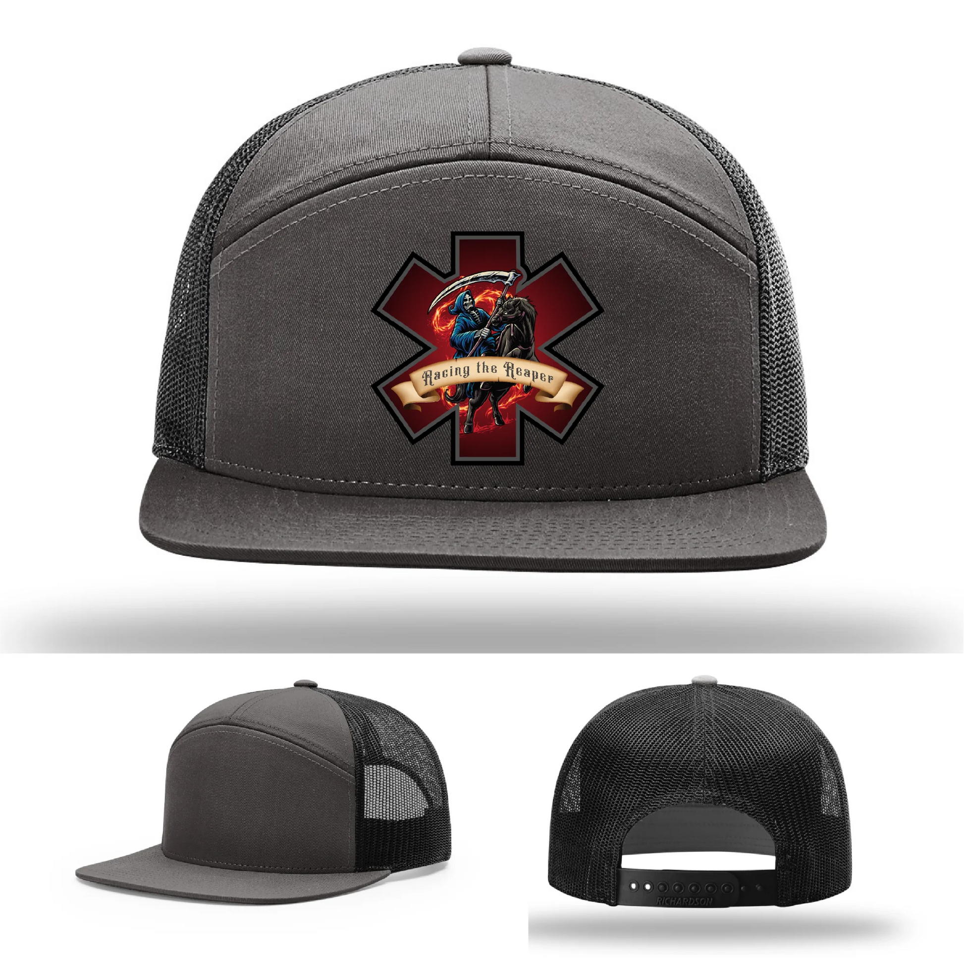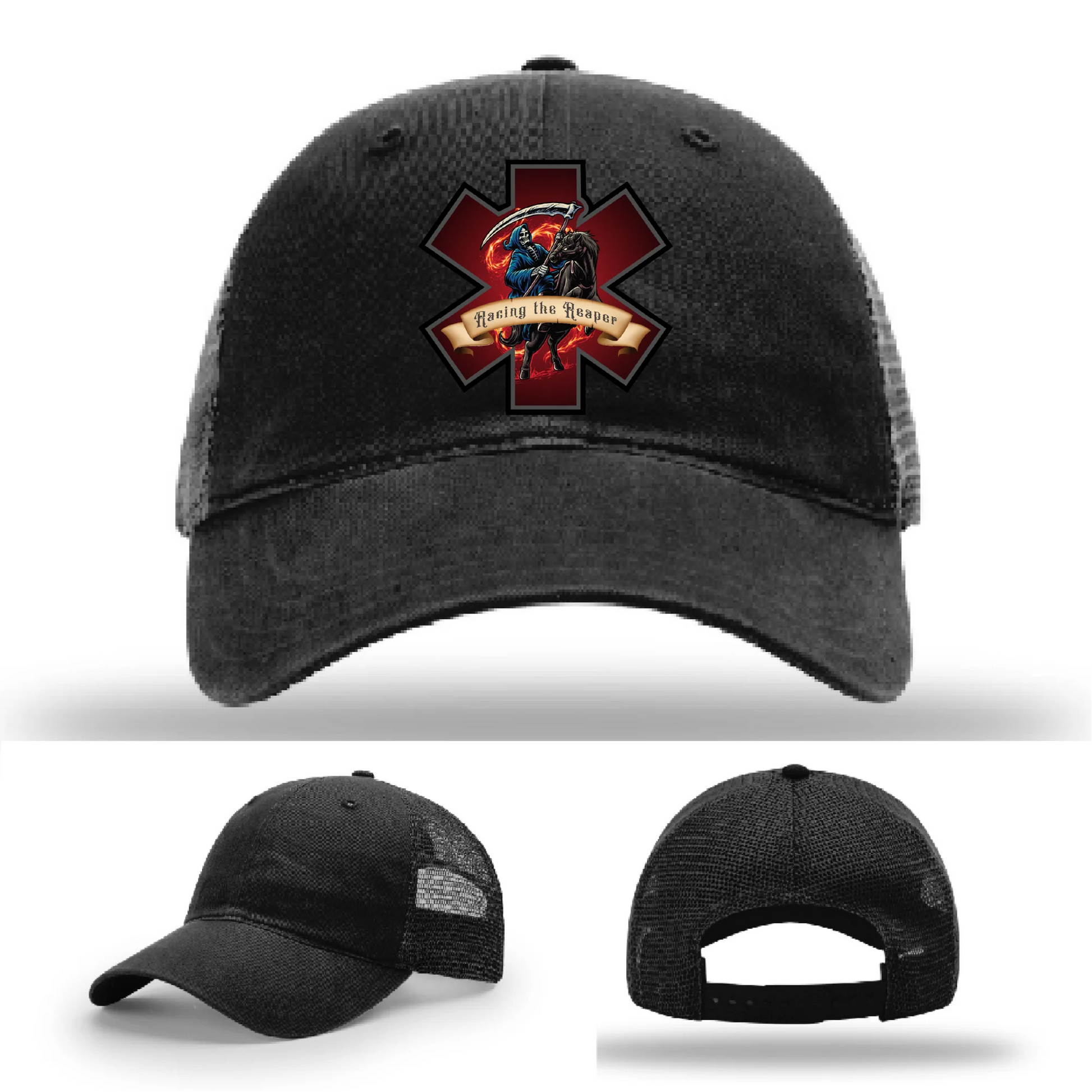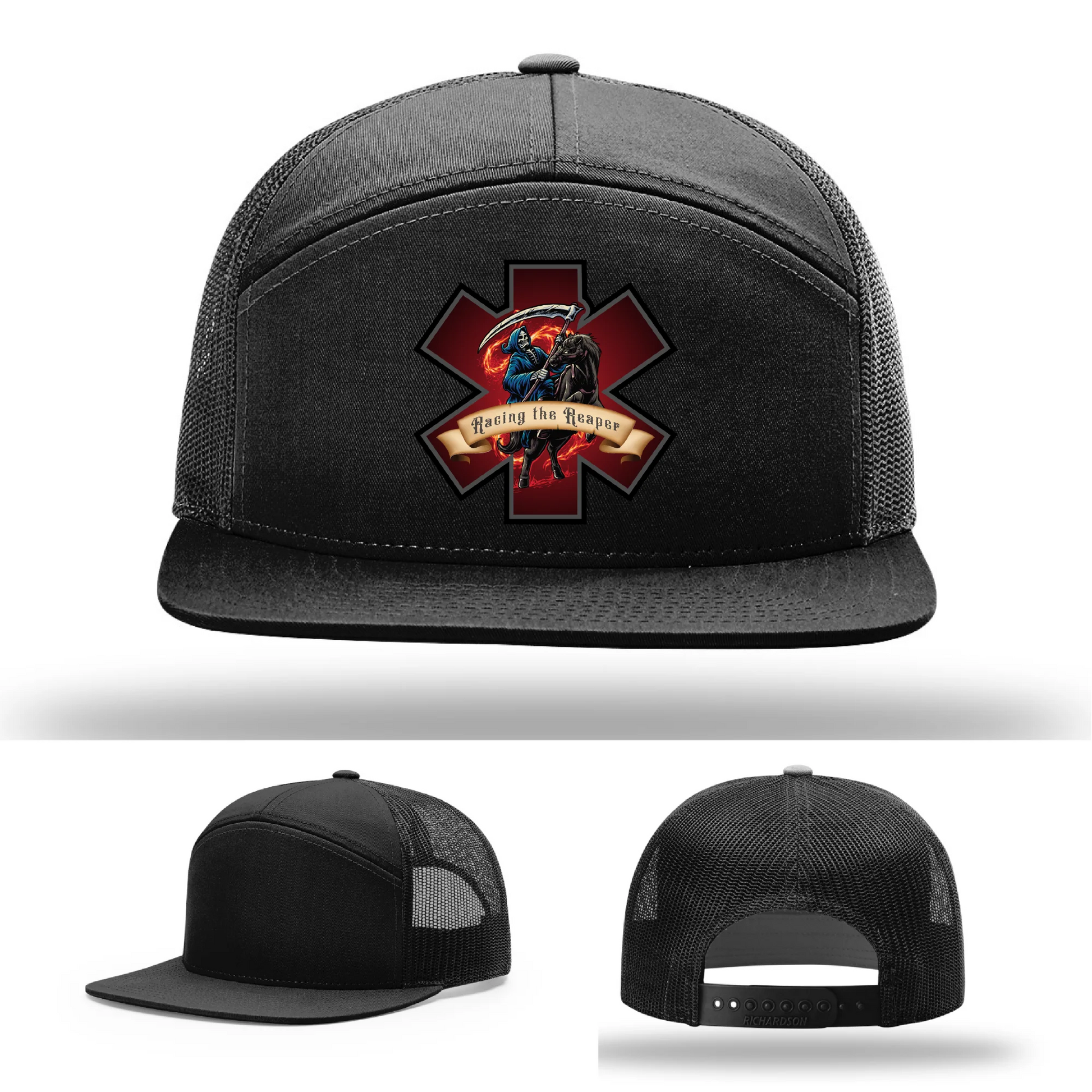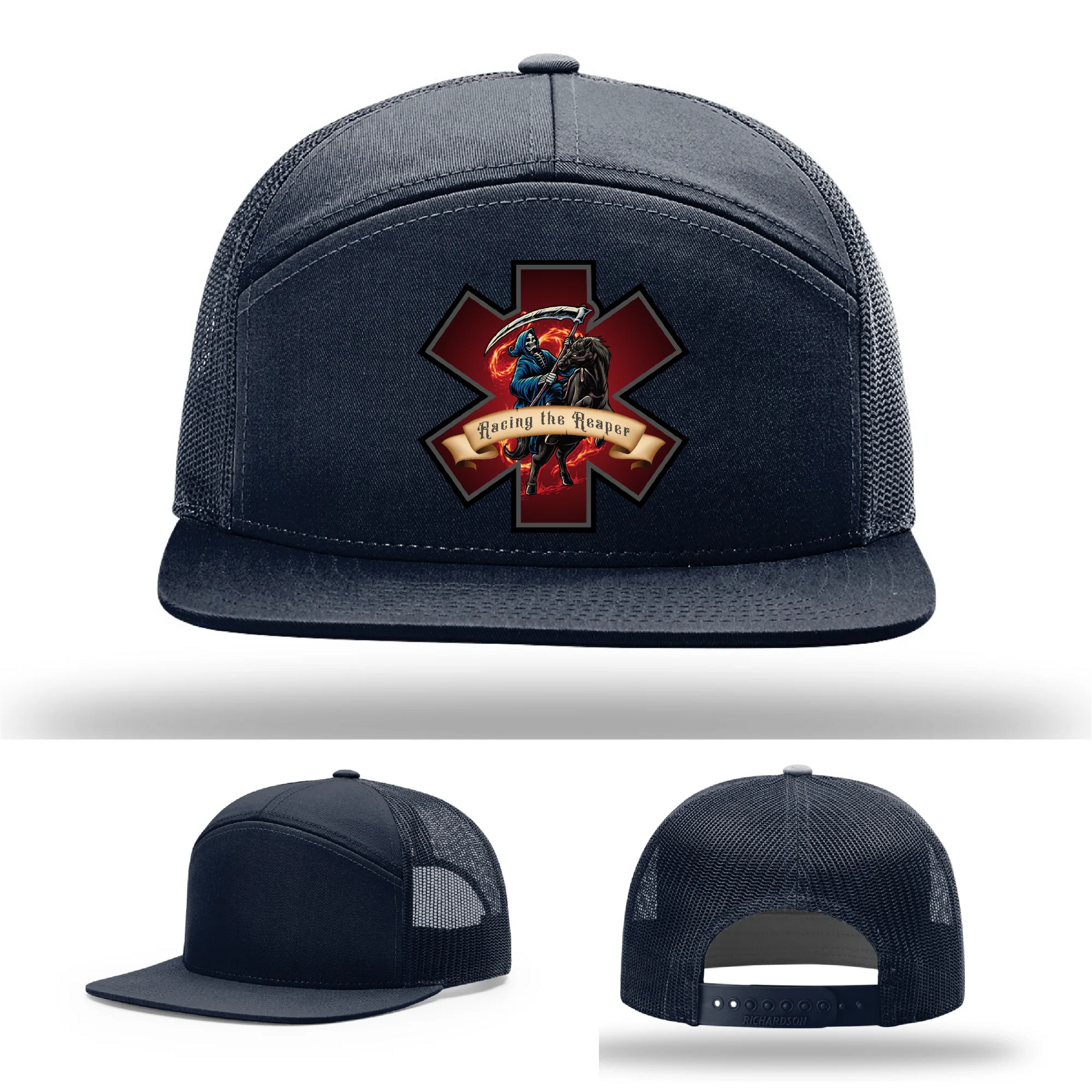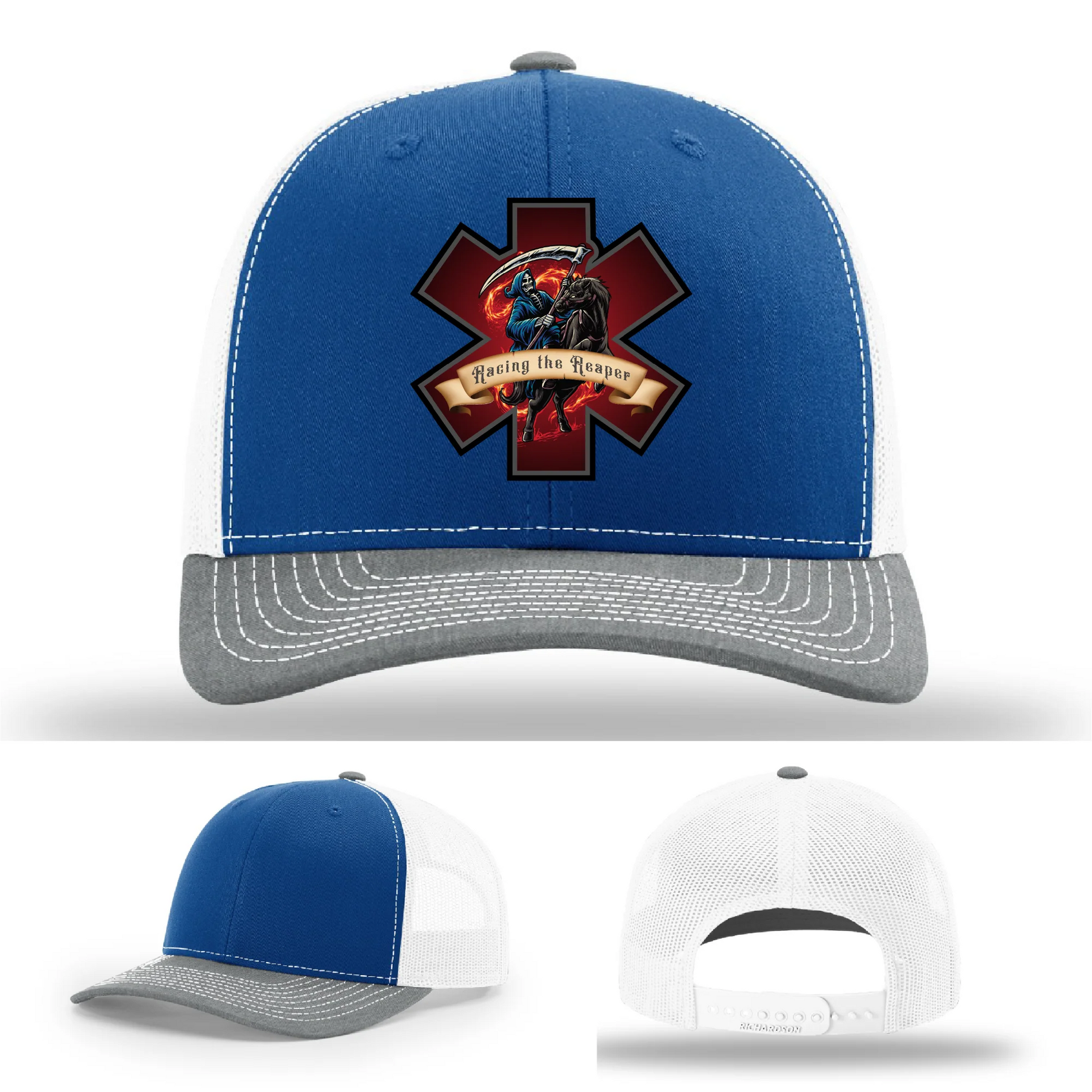 You’ve raced the Reaper more times than you can count—and won. This EMS Reaper leather patch hat is for the medics who never back down. Featuring a full-color reaper design with the Star of Life front and center, it’s made for EMTs, paramedics, and first responders who don’t flinch at chaos.