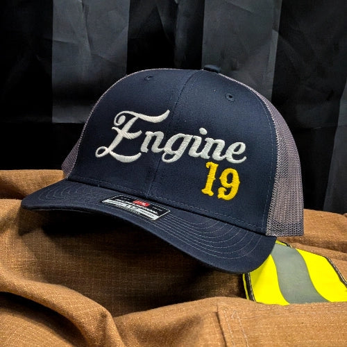 This is not some off the shelf design with your name slapped on it. This is a fully custom embroidered fire company hat built to reflect your Engine, Truck, Ladder, Rescue, Squad, Battalion or whatever rig you ride. You choose the company designation. You choose the company number. We bring it to life in a bold, traditional style that looks right in the firehouse and even better out in public.