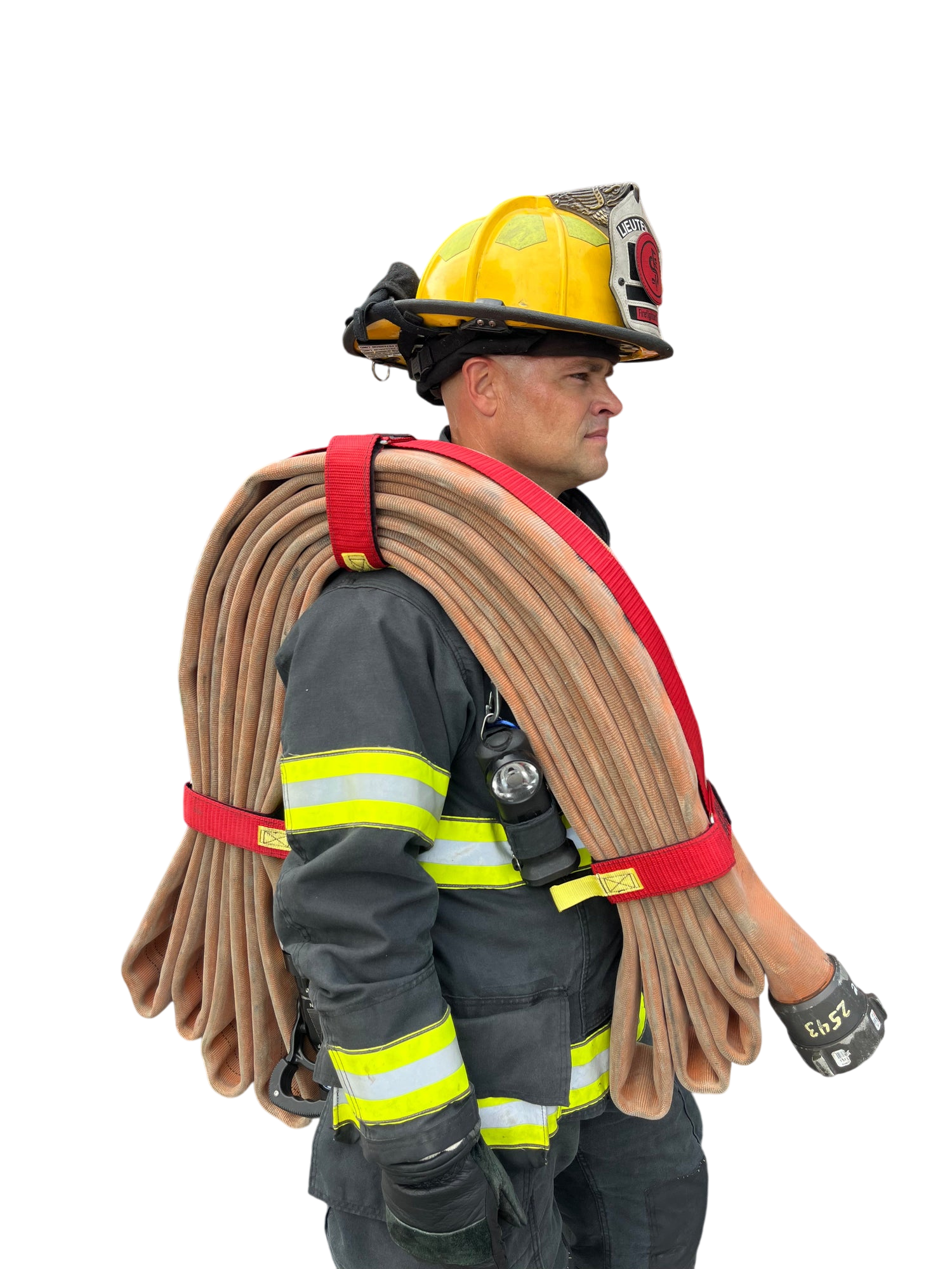 The Fixed Hose Bundle Strap Kit - Denver Load - FFHS-R24-KIT-48 is engineered to maintain the integrity and manageability of a 50-foot bundle of 2 1/2” hose, specifically tailored for high-rise firefighting operations. This kit includes three 24-inch hose straps securely attached to a 48-inch spine, providing robust containment to cinch the hose bundle tightly. By keeping the hose compact and preserving its original form, the strap kit facilitates faster deployment, reduces tangling, and improves transport efficiency. Its durable construction ensures reliable performance under demanding conditions, making it an essential tool for organized and effective hose management on the fireground.