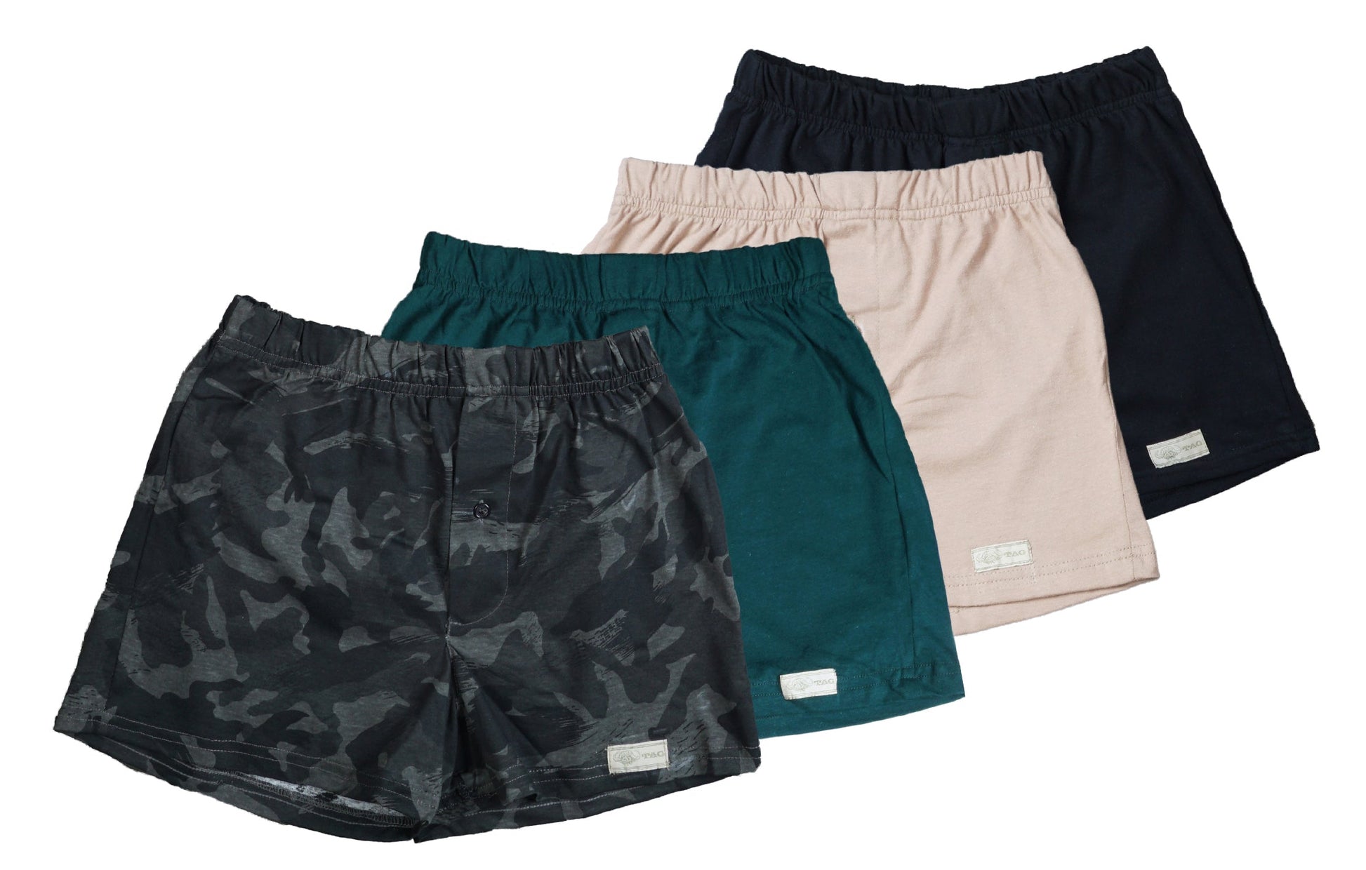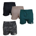 4 Pack includes Gray Camo, Khaki, Forest and Black Boxer Shorts