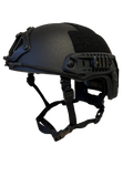 is engineered to meet the latest US Military ballistic standards, offering advanced protection against handgun threats. Its multi-layered Kevlar composite shell ensures durability and superior ballistic resistance. The helmet’s harness assembly features a ratchet dial for precise sizing, ACH comfort padding, a secure four-point harness, and a leather-lined chin strap for enhanced stability and comfort during extended wear. Designed with a reduced profile, it provides an expanded peripheral and upward field of view, improving situational awareness and allowing unrestricted movement. This design also supports the integration of protective goggles, night vision devices (NVG), and communication systems. Additionally, the helmet is compatible with ballistic or riot visors, enhancing versatility for various operational needs. The High Cut H1 ACHHCSTD IIIA version comes standard with rails, an NVG mount, a ratchet adjustment system, and loop fasteners, making it an ideal choice for ground troops, police forces, and special units in urban environments. Its combination of modularity, comfort, and protection ensures reliable performance in demanding situations..