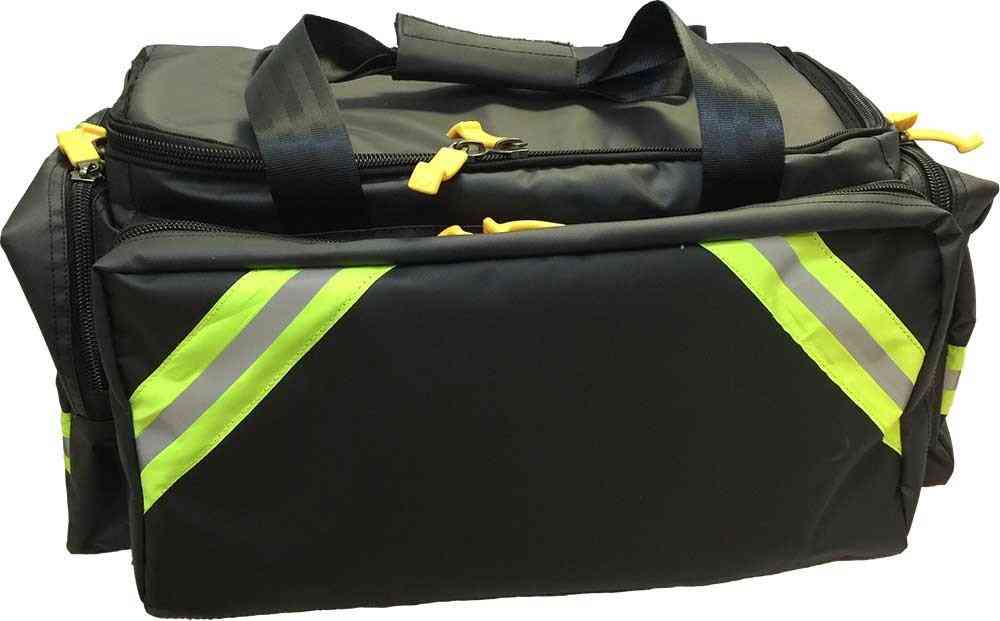 LINE2design First Aid Deluxe EMS Oxygen Medical Bag, All Impervious Fully Padded with Shoulder Straps & Yellow Trim - Black
