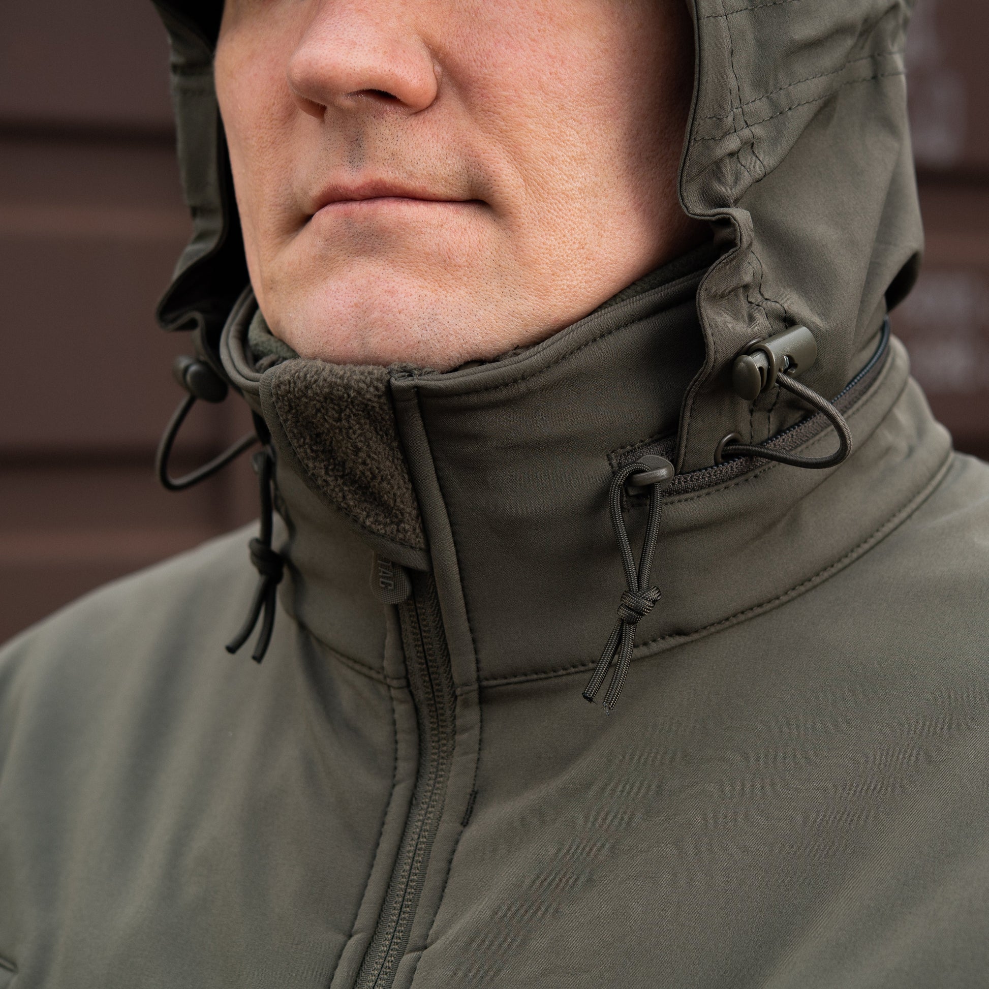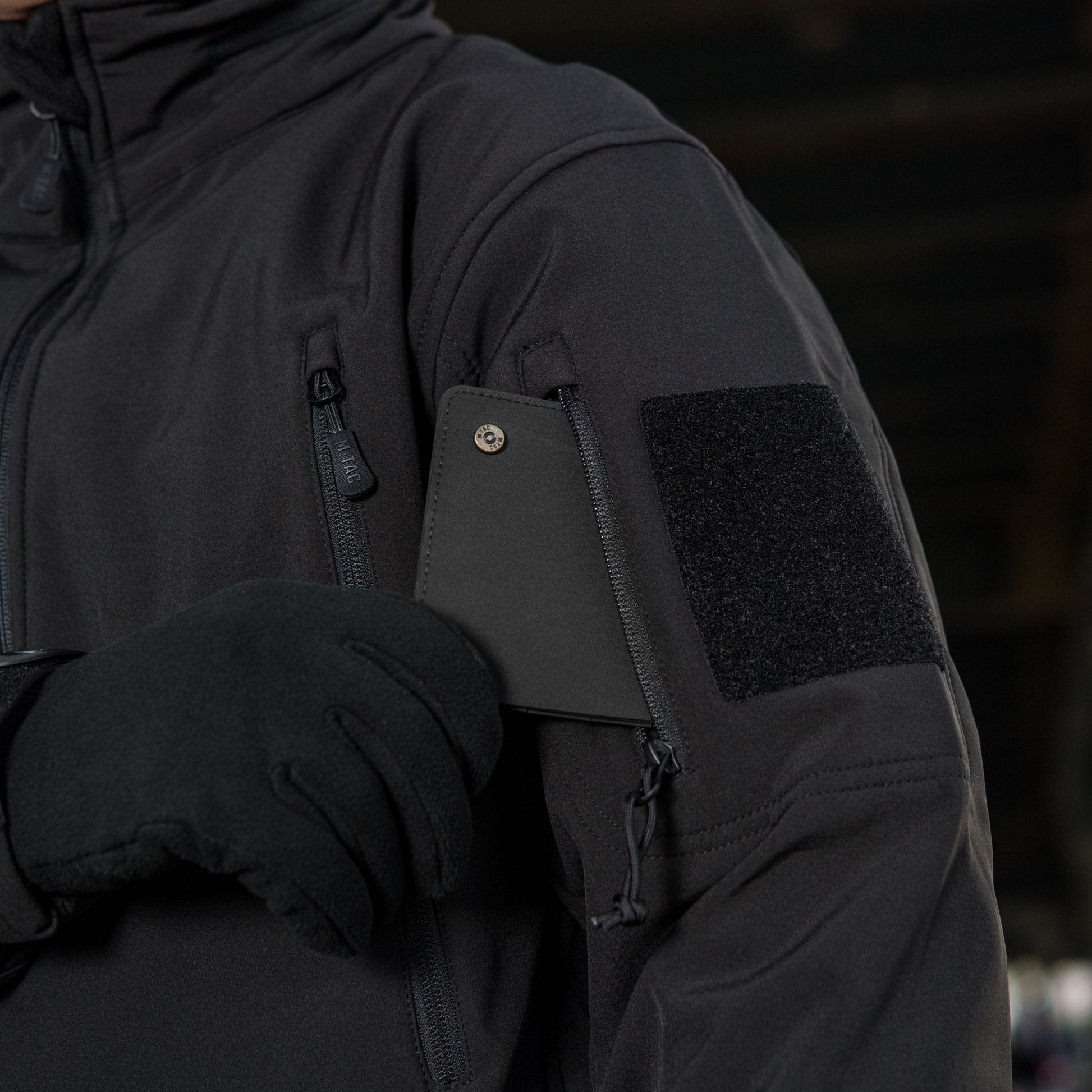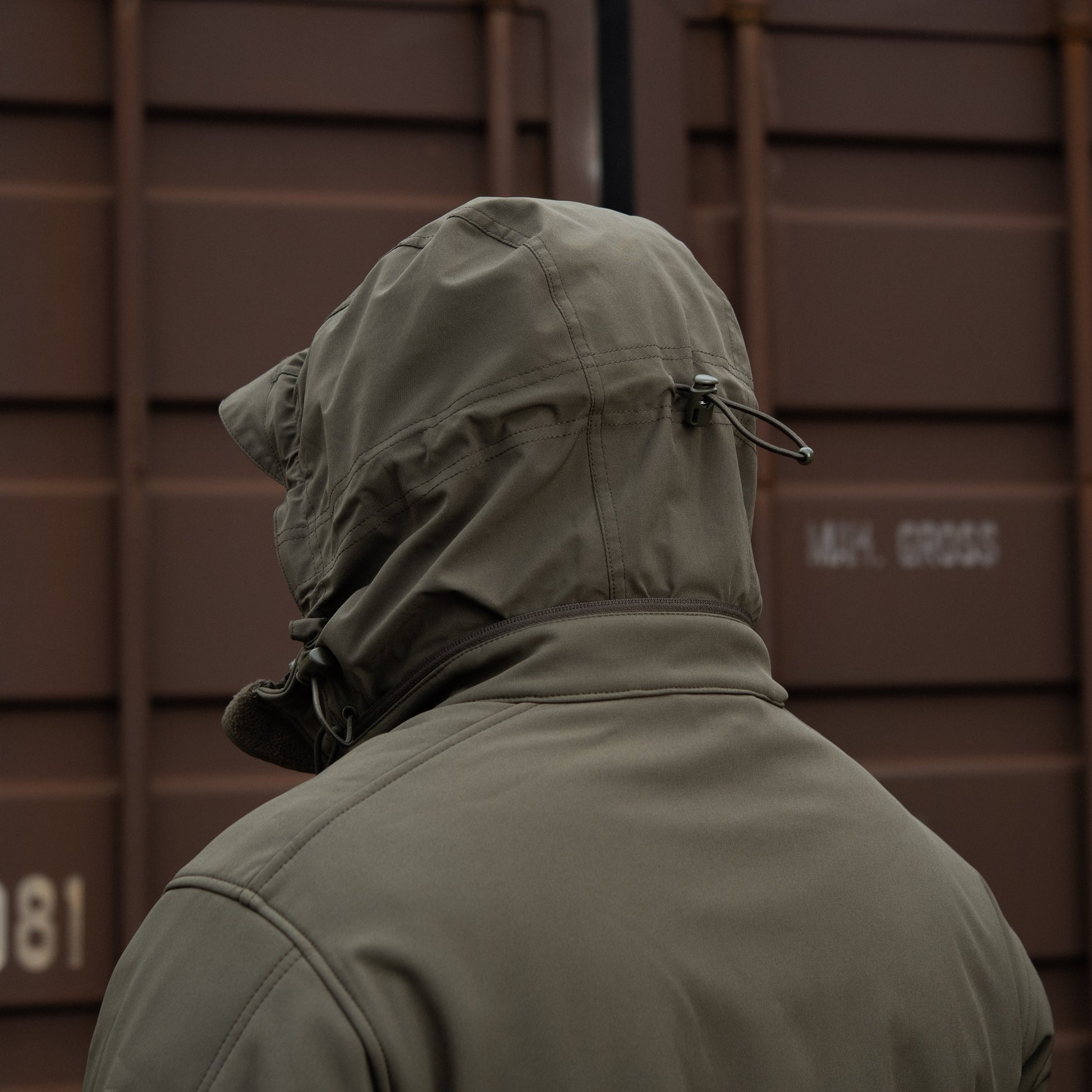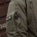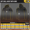 The M-TAC Soft Shell Jacket with detachable lining is made of an interlayer polyurethane membrane that protects from bad weather. Inside, it has a thin fleece. In this model, the manufacturer has added detachable fleece lining, which is attached with a zipper (can be worn as a separate item of clothing). The softshell products have several outstanding properties: their low weight and the combination of two layers of clothing in one. The softshell combines an outer layer (for protection from wind and wet weather) and an insulating inner layer. The top fabric is not only moisture-deflecting but also dirt-deflecting as well. Besides, the soft and streamlined material makes it more comfortable to wear. The front zipper is made by YKK. The zipper has high quality and performs its function without any problems. Due to the presence of a number of pockets, it has increased functionality. Available two shoulder pockets, two inside pockets, two hand pockets, horizontal back pocket, forearm pocket. Axillary ventilation zippers improve thermoregulation. Elastic cord at the waist and adjustable wrist cuffs allow you to fit the jacket more comfortably on the body. And the compactly folded hood located at the back of the collar will always protect you from rain or snow. Side loop panels on the sleeves allows to wear various moral patches.