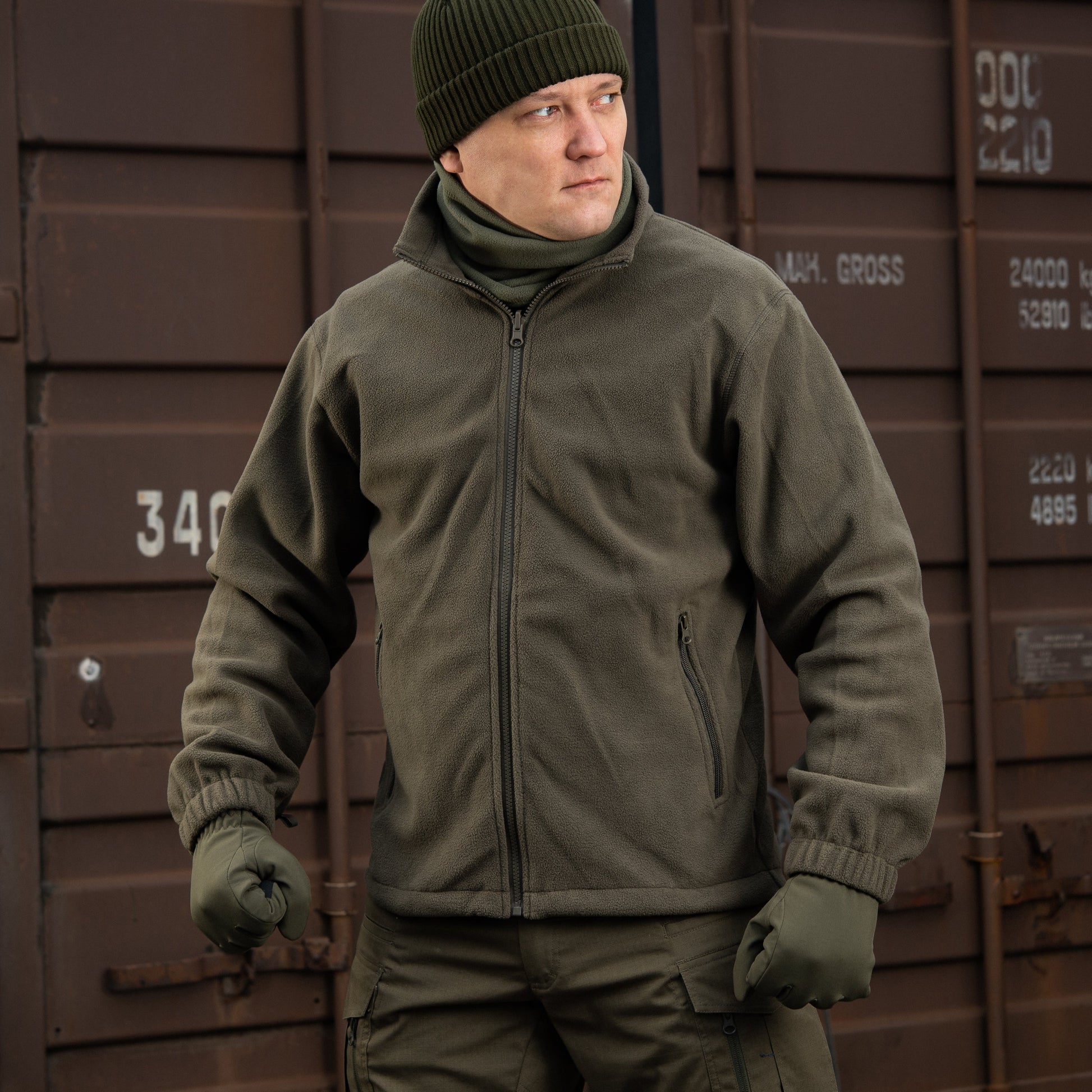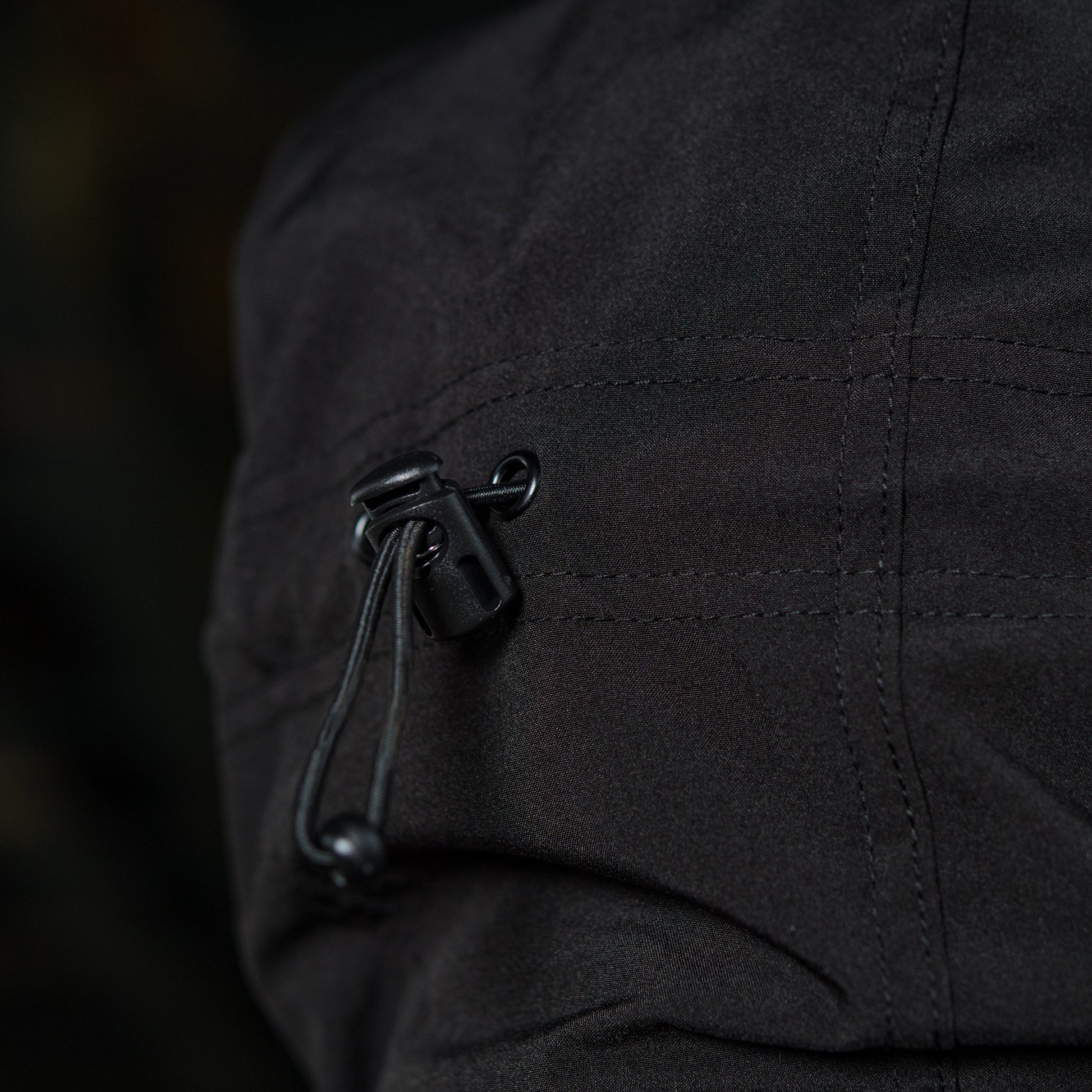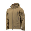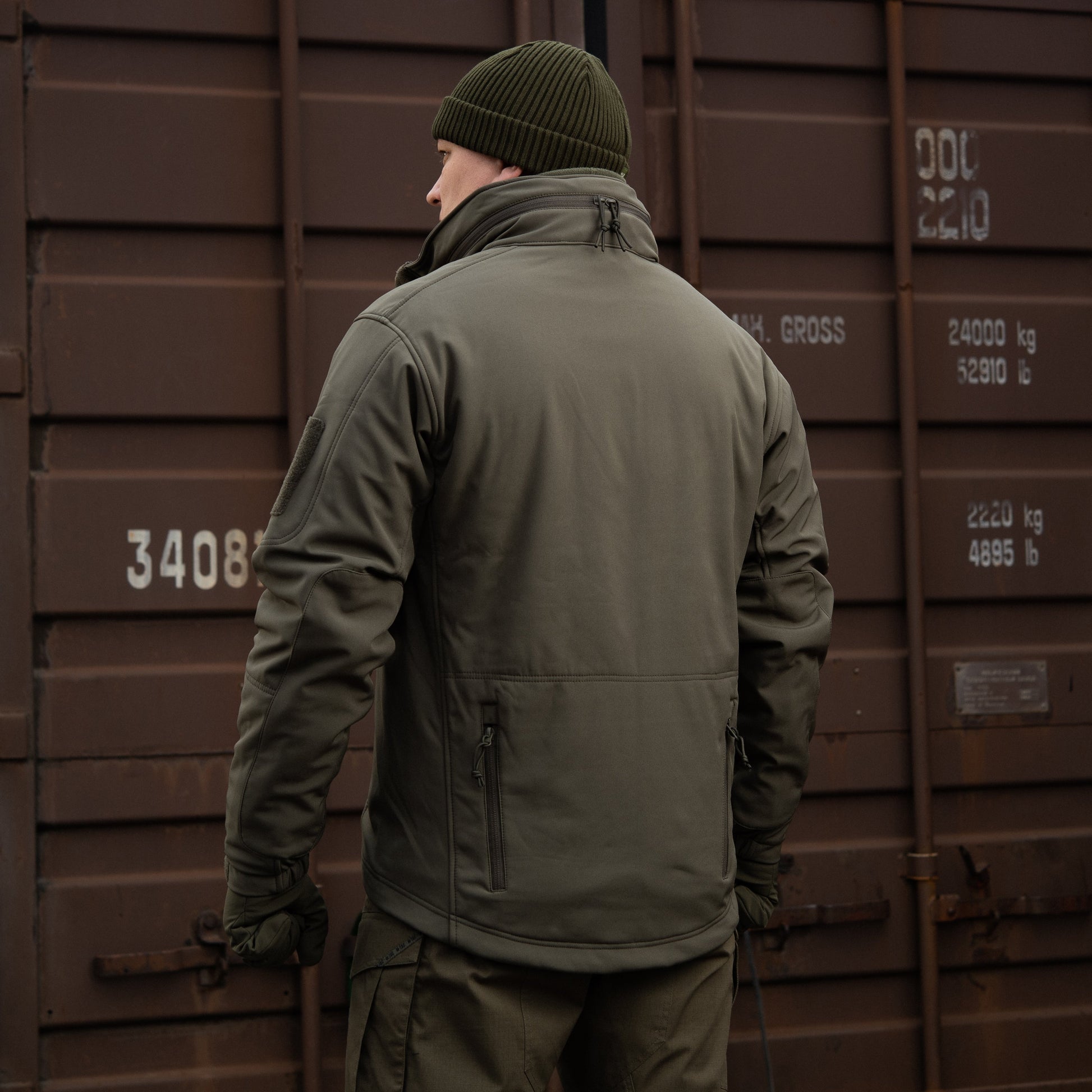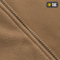 The M-TAC Soft Shell Jacket with detachable lining is made of an interlayer polyurethane membrane that protects from bad weather. Inside, it has a thin fleece. In this model, the manufacturer has added detachable fleece lining, which is attached with a zipper (can be worn as a separate item of clothing). The softshell products have several outstanding properties: their low weight and the combination of two layers of clothing in one. The softshell combines an outer layer (for protection from wind and wet weather) and an insulating inner layer. The top fabric is not only moisture-deflecting but also dirt-deflecting as well. Besides, the soft and streamlined material makes it more comfortable to wear. The front zipper is made by YKK. The zipper has high quality and performs its function without any problems. Due to the presence of a number of pockets, it has increased functionality. Available two shoulder pockets, two inside pockets, two hand pockets, horizontal back pocket, forearm pocket. Axillary ventilation zippers improve thermoregulation. Elastic cord at the waist and adjustable wrist cuffs allow you to fit the jacket more comfortably on the body. And the compactly folded hood located at the back of the collar will always protect you from rain or snow. Side loop panels on the sleeves allows to wear various moral patches.