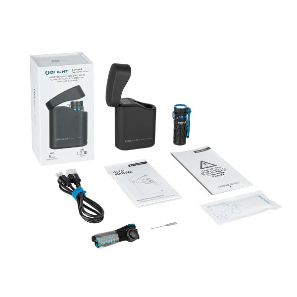 OLIGHT BATON4KITBK Baton 4 Powerful EDC Flashlight 1300 Lumens - Black - Premium (With Charging Case)