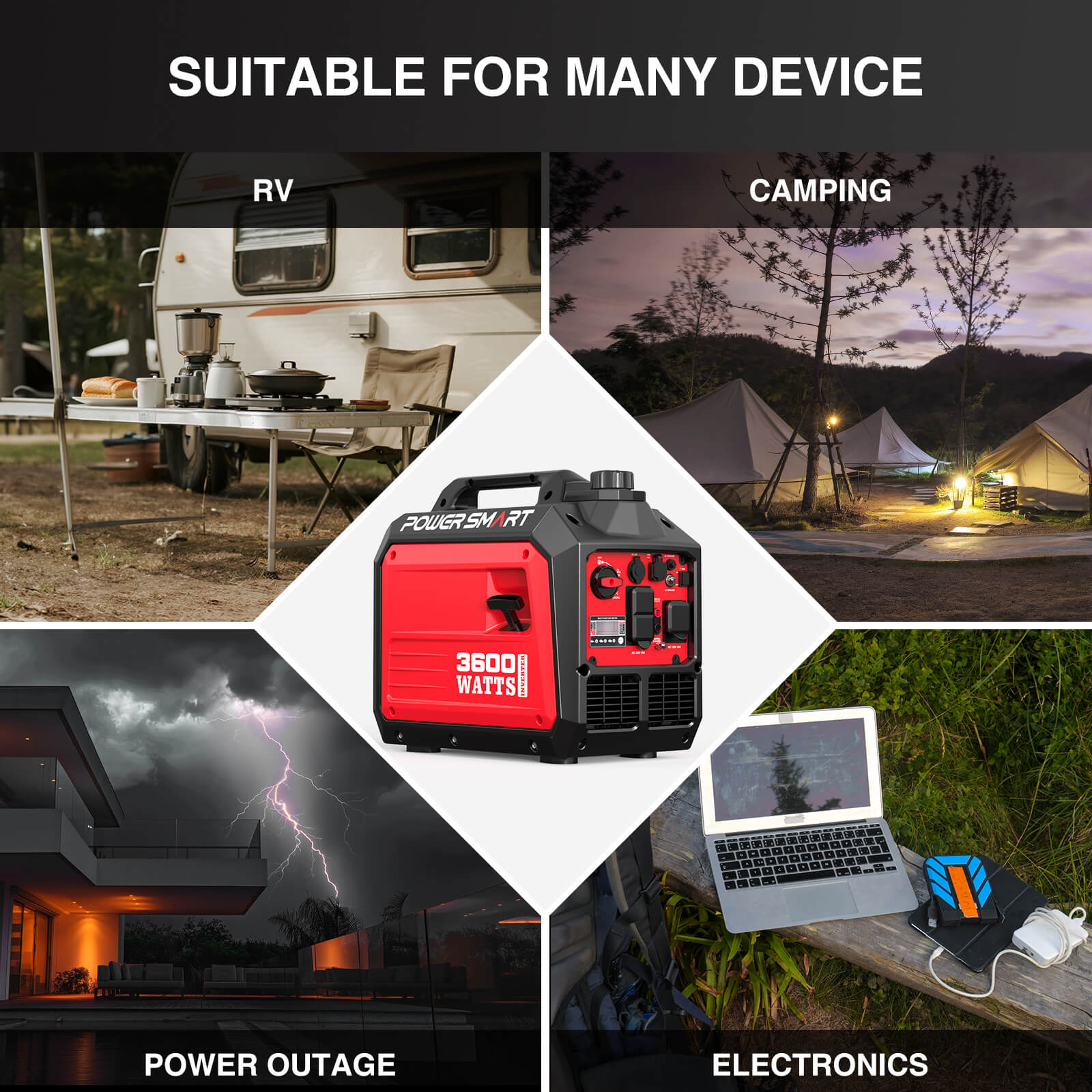 PowerSmart 3600W Quiet Inverter Generator with CO Alert, 3200W Output, Lightweight & Portable