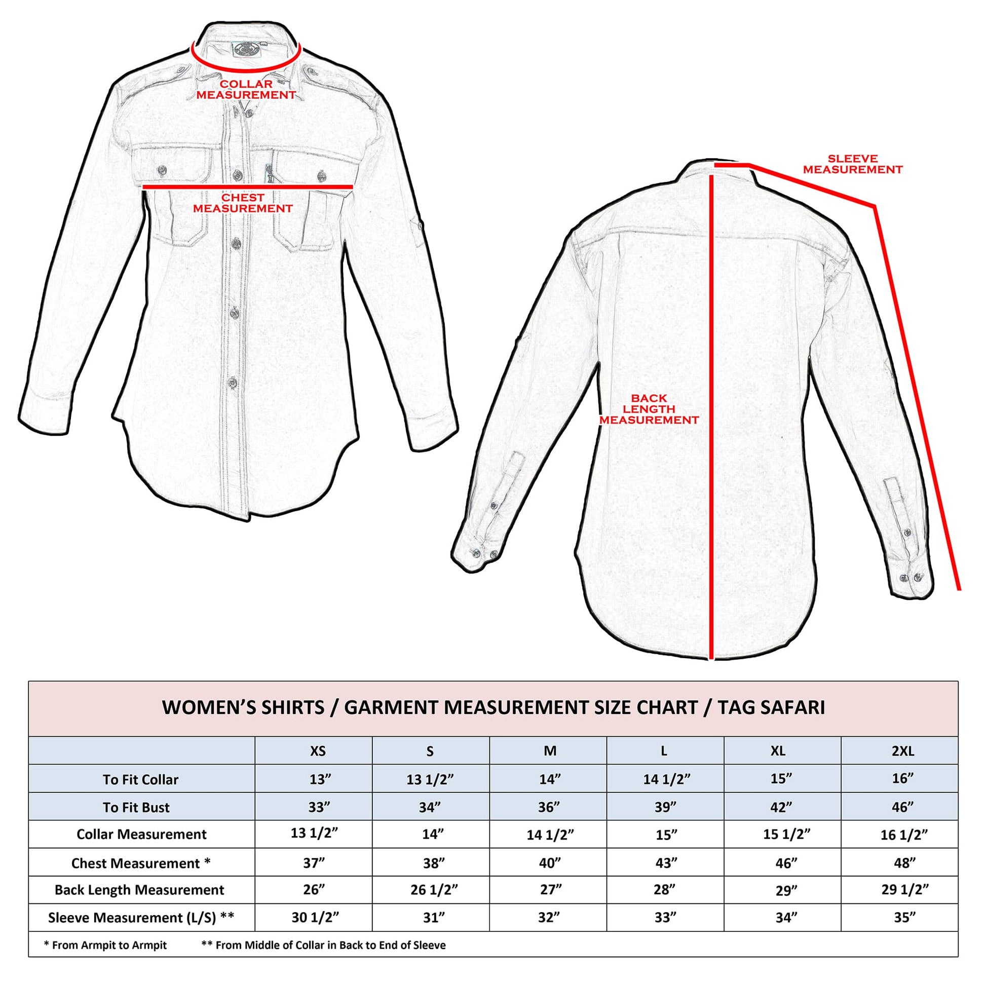 - PRACTICAL FEATURES: Tag Safari long Sleeve women's shirt with two chest pockets with button down flaps for convenient storage of essential outdoor gear, functional cross-stitched epaulettes prevent a camera or canteen from slipping off your shoulder.