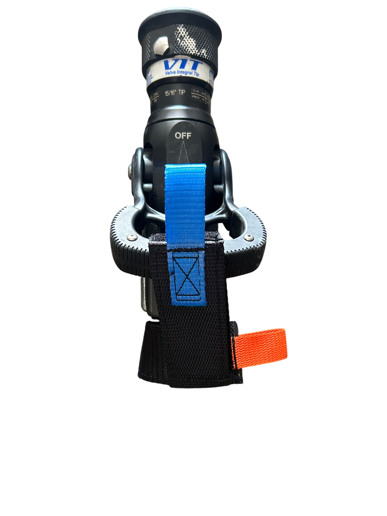The Bale Strap for 1-3/4" Nozzle (Short) – FFHCSS is specifically designed to secure the bale handle in the open position when the nozzle serves as an inline shut-off. This strap prevents accidental closing of the bale, ensuring an uninterrupted water supply to interior attack teams during critical firefighting operations. Constructed from durable materials, it offers reliable performance under demanding conditions. By maintaining consistent water flow, the bale strap enhances operational safety and effectiveness, providing firefighters confidence that their nozzle remains properly engaged throughout the incident.