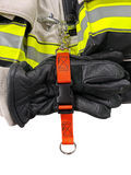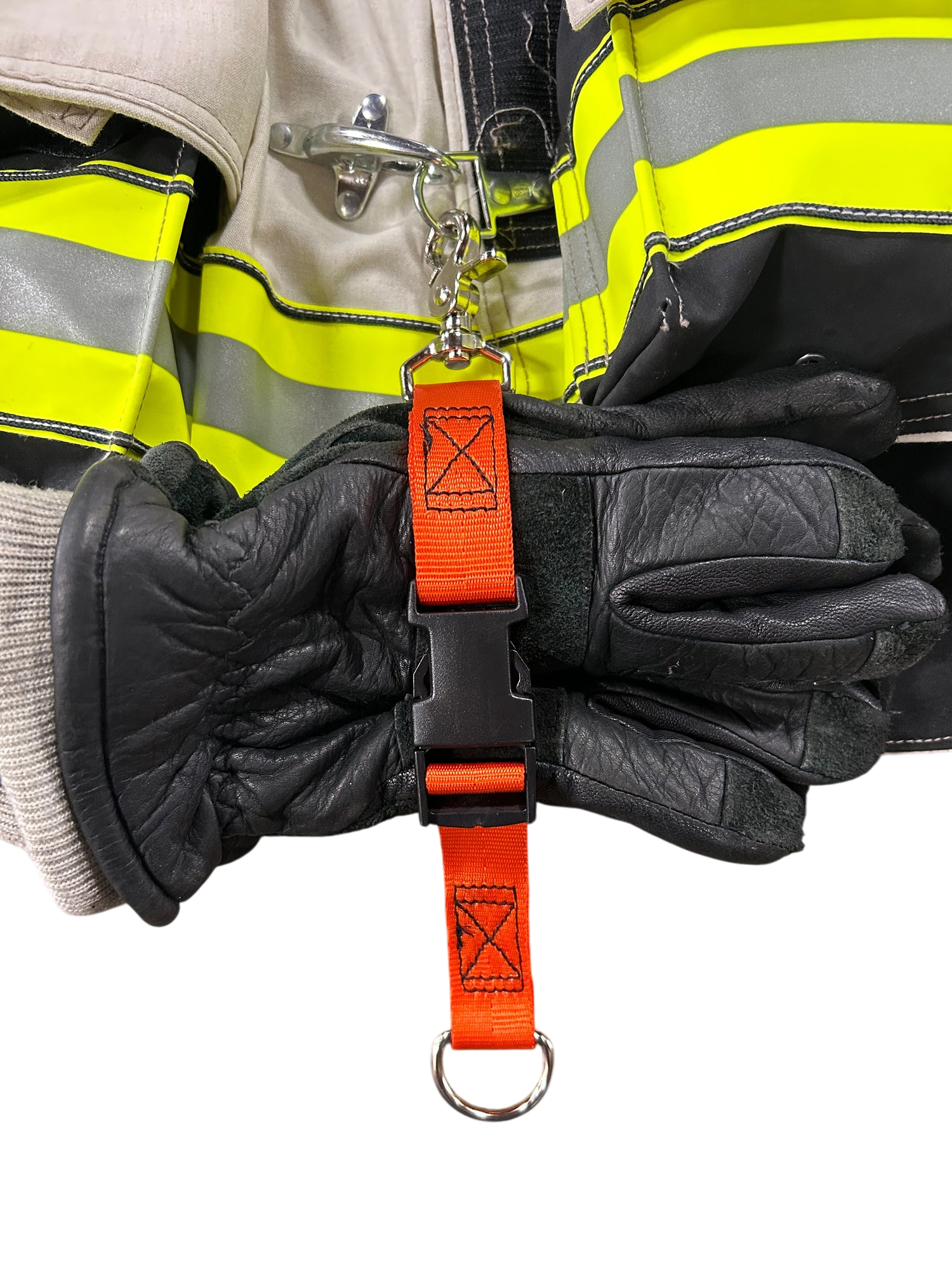 The Glove Strap - FFGS is designed to securely hold your firefighting gloves in place, preventing loss and ensuring quick access when needed. Featuring a quick-release buckle, it allows for a single-handed release, enabling firefighters to swiftly detach their gloves under pressure. The integrated spring clip easily attaches to your bunker gear, keeping your gloves accessible yet firmly secured during operations and transit. Built for durability and convenience, this strap enhances readiness by combining secure glove storage with rapid deployment capabilities essential for emergency response situations.