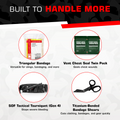 Complete trauma care kit with essential supplies, including a tourniquet, chest seal, and trauma bandage for immediate emergency response
