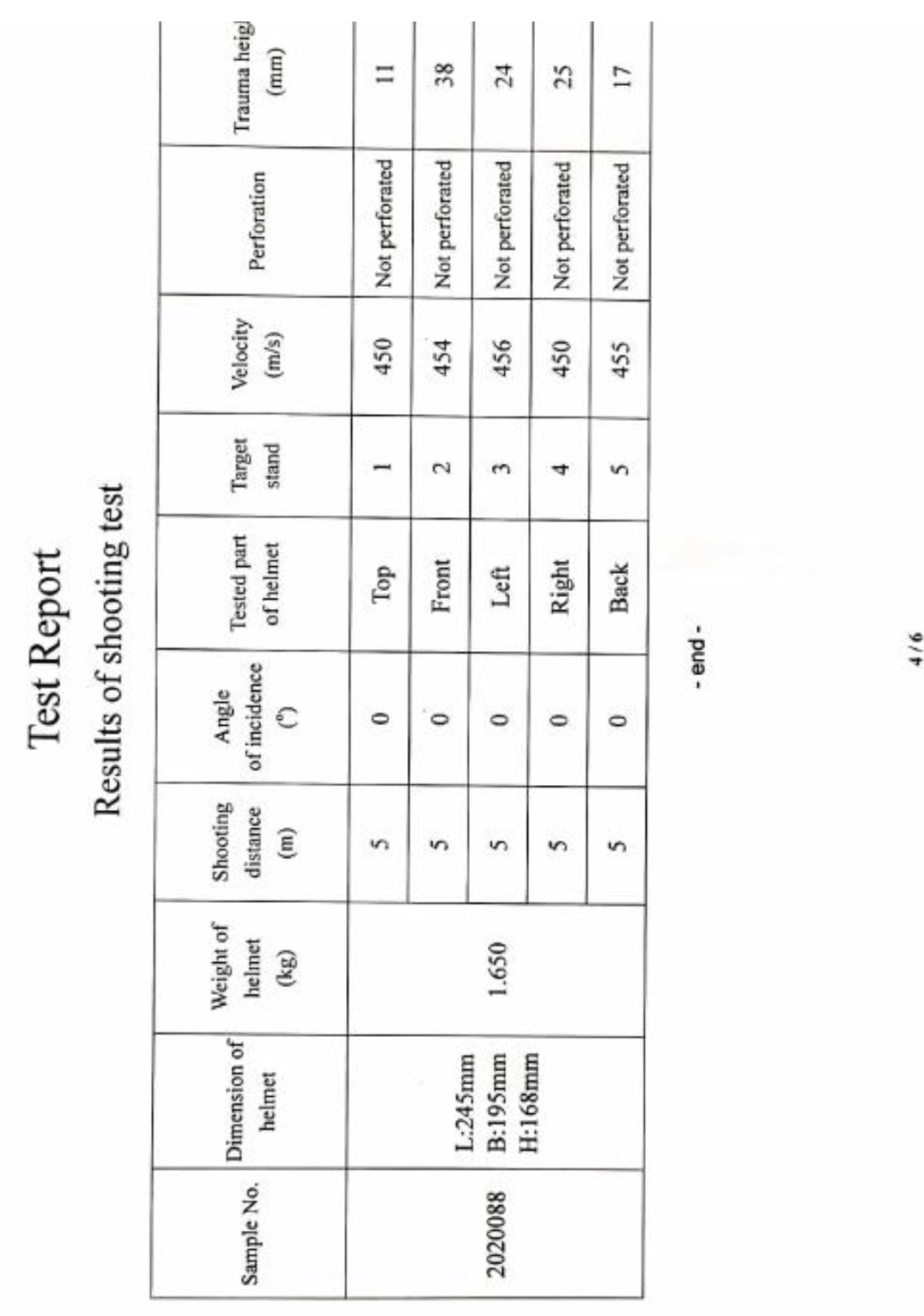 (The NIJ does not have Certification for any Ballistic Helmets, so no certificate available)