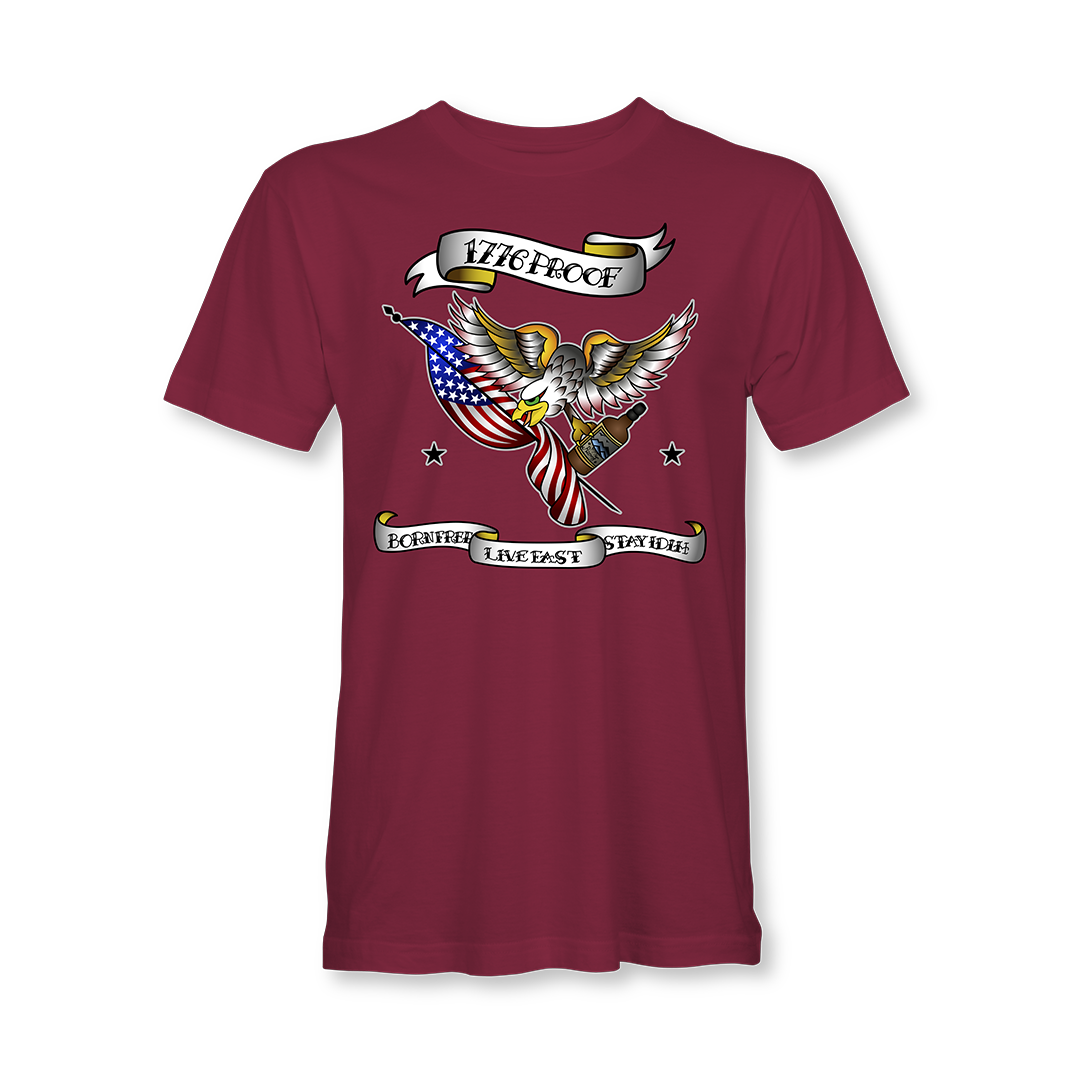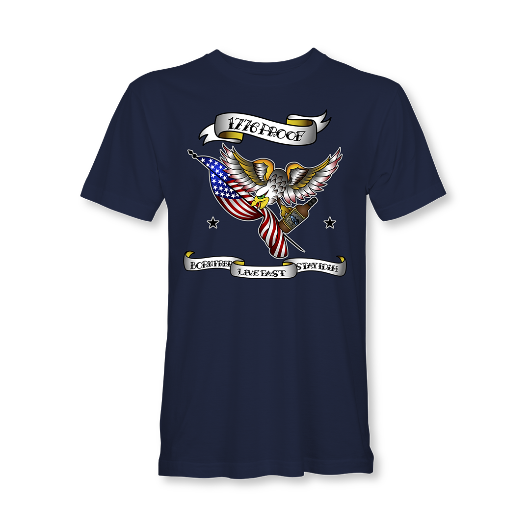 1776 Proof Born Free Shirt in Cardinal Navy Unisex 2XL