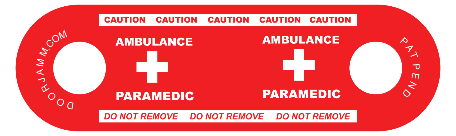 This DoorJamm is clearly marked with AMBULANCE and PARAMEDIC with the universal red cross symbol on both ends on one side.