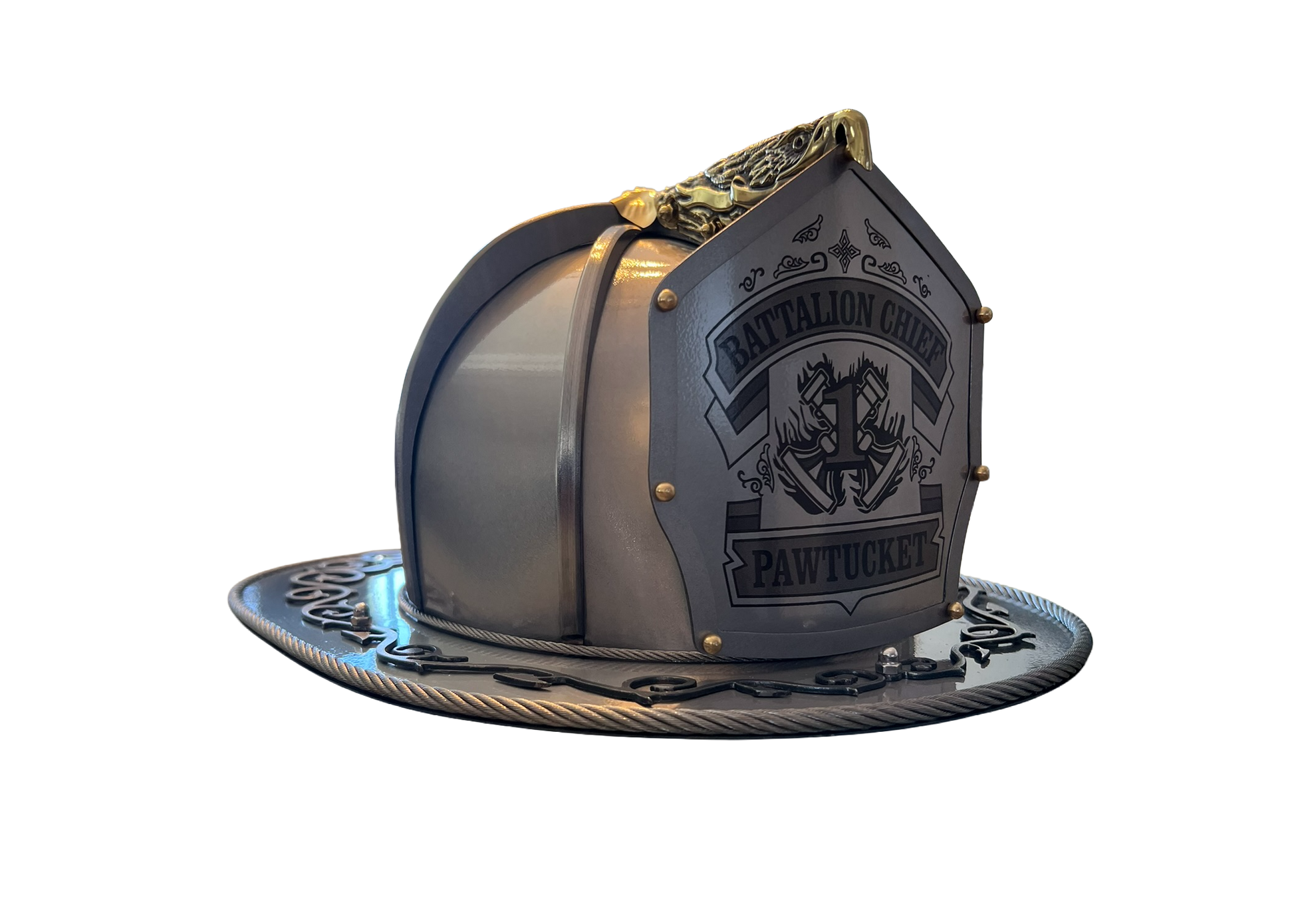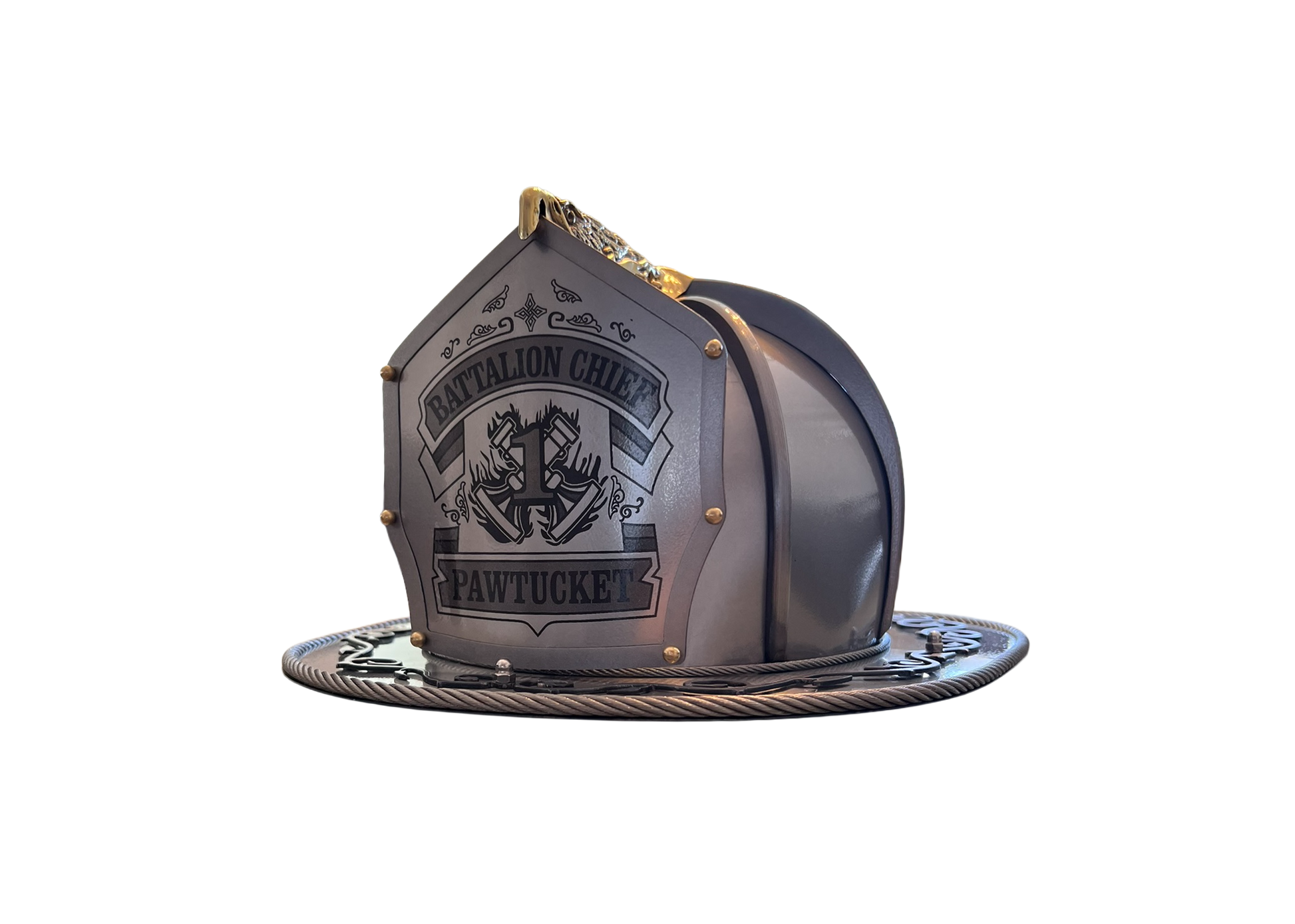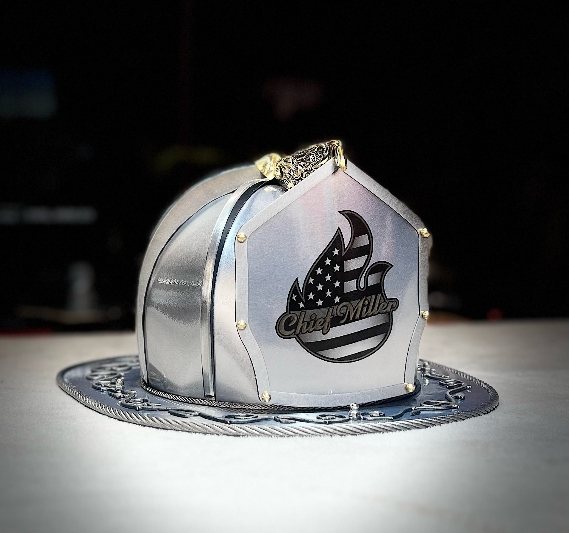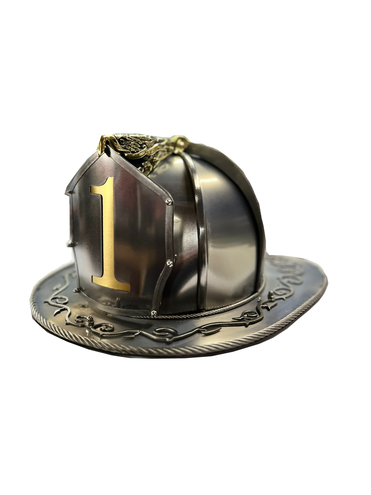 Custom steel helmets are individually fabricated, welded, and assembled by a firefighter using locally sourced American steel and completed with brass finishes. They are a perfect legacy piece for active or retired firefighters, memorials, firehouses, union halls, companies, or anyone who loves the job.