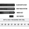 Outer Battle Belt is Nylon Web flanked by two rows of Molles, Super-Fiber inner lining & proprietary Reinforced Power-Core™ center. The Inner Velcro Liner belt is nylon web & feeds thru belt loops to hold up your pants & support the weight of the outer Battle belt. The 2 belt system works in unison to adjust the belt's size - in and out - and they must be used together.