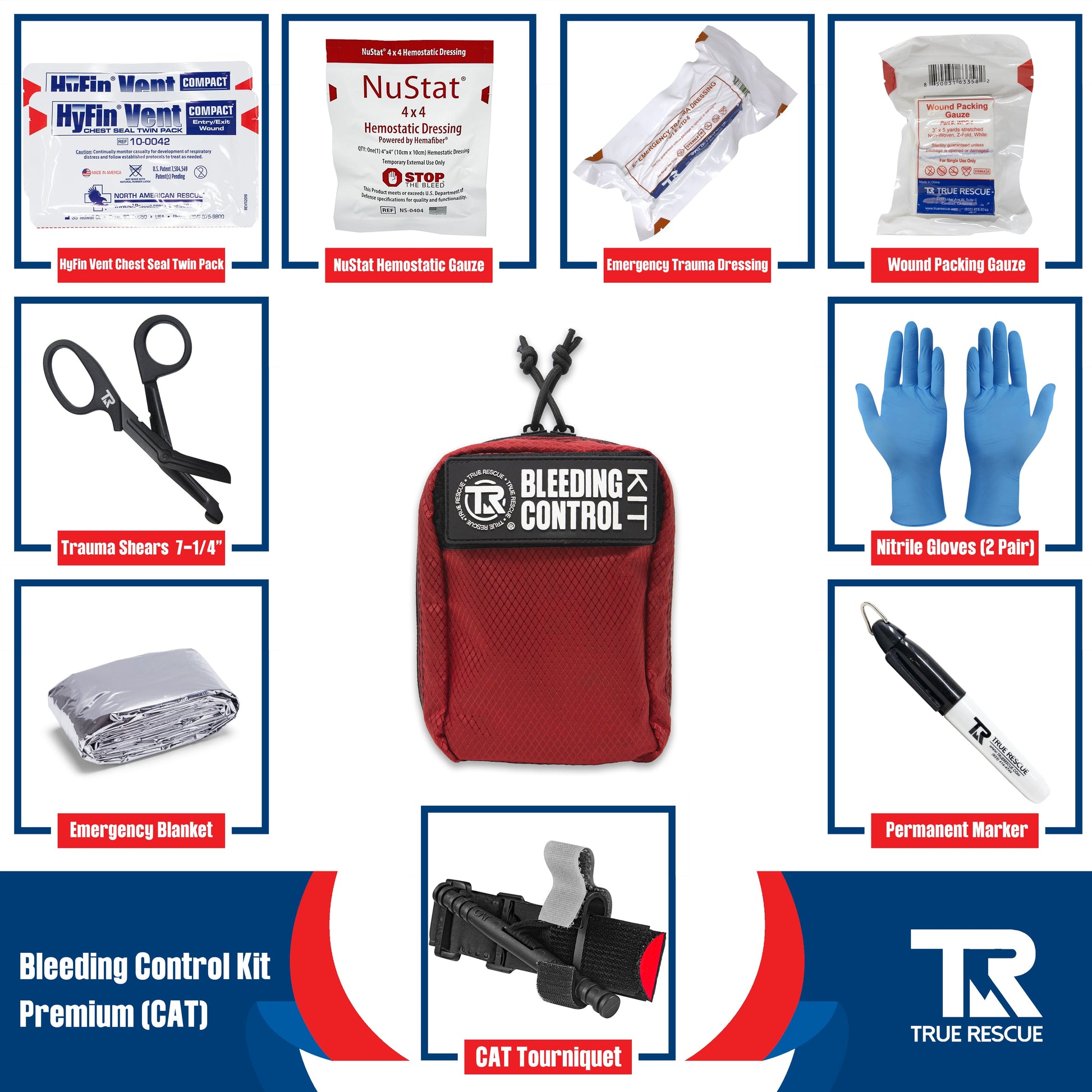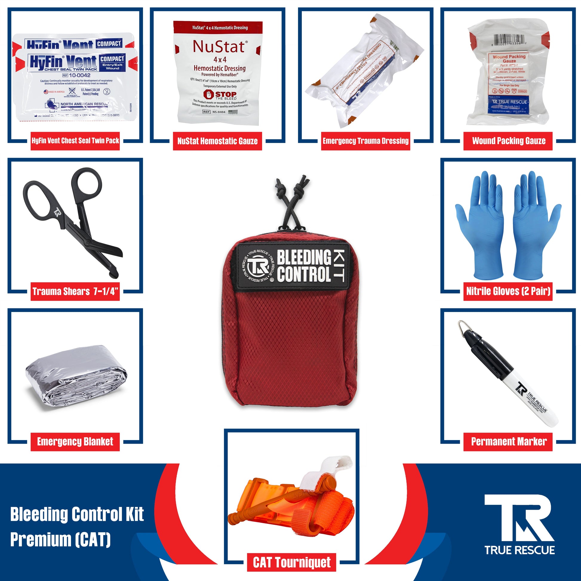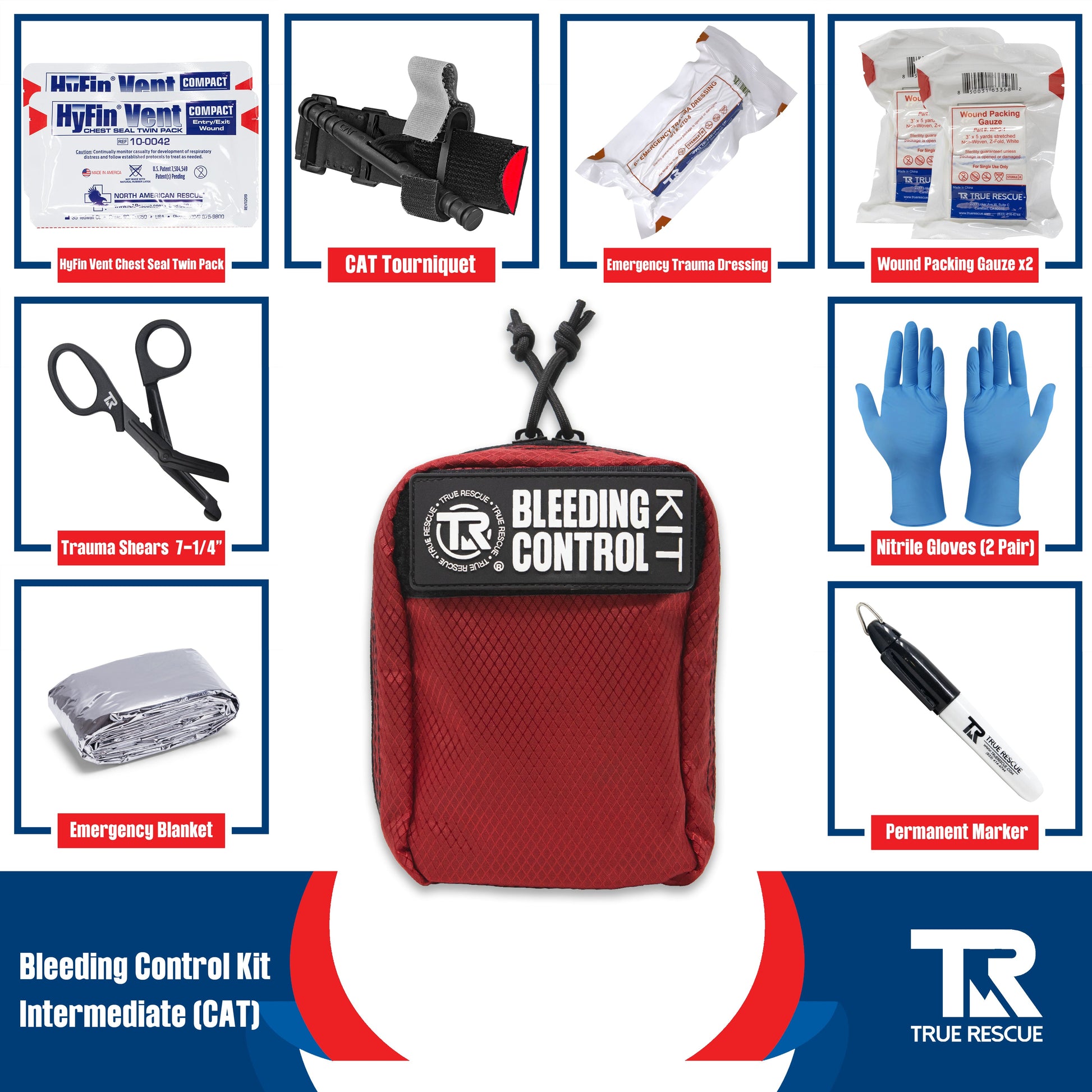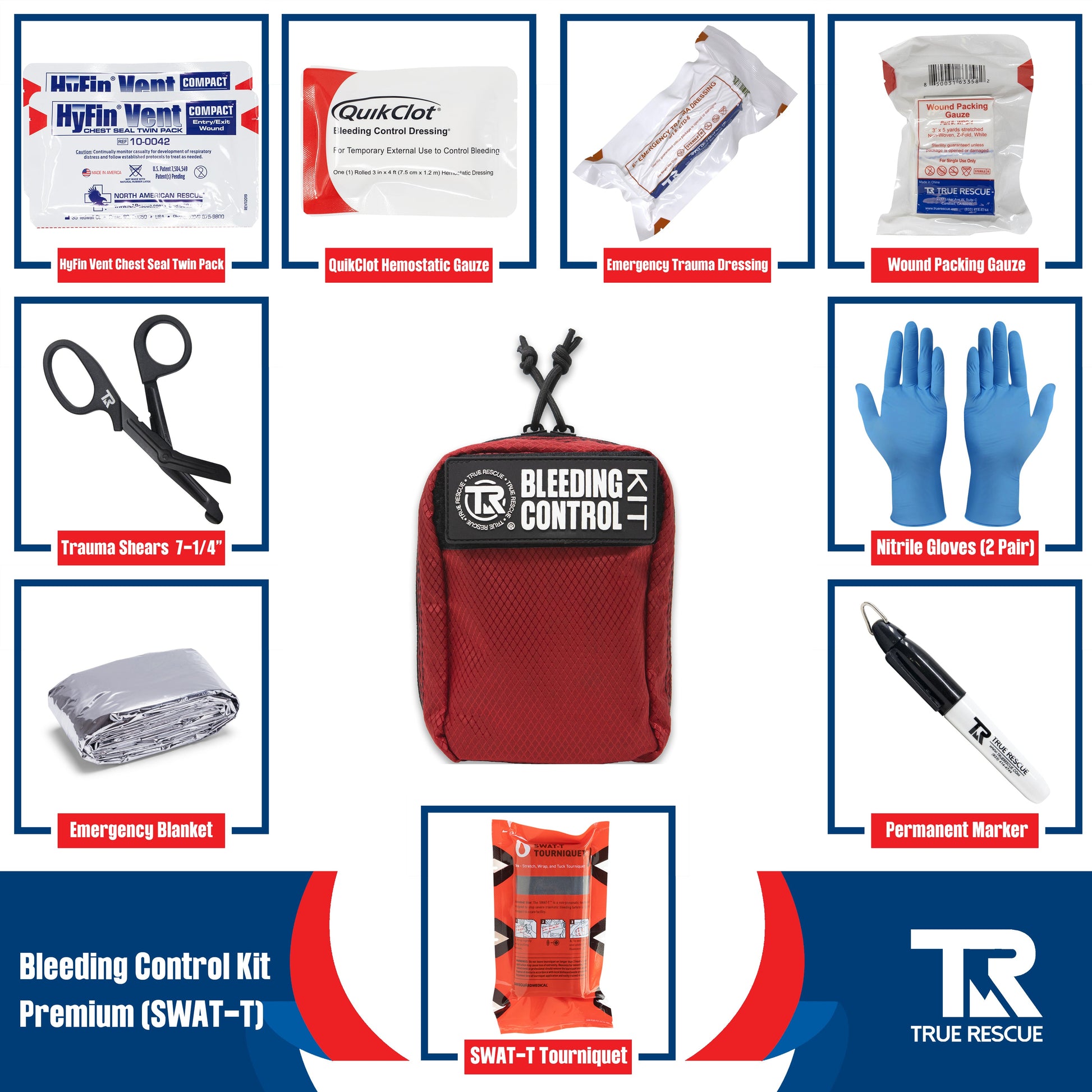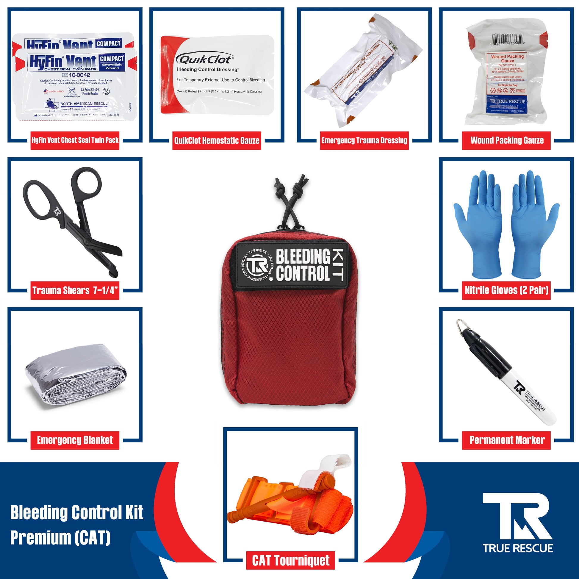 The Bleeding Control Kit by True Rescue® provides the lay responder with battlefield tested tools to help control life threatening traumatic blood loss. Our kits are expertly crafted with input from seasoned first responders.