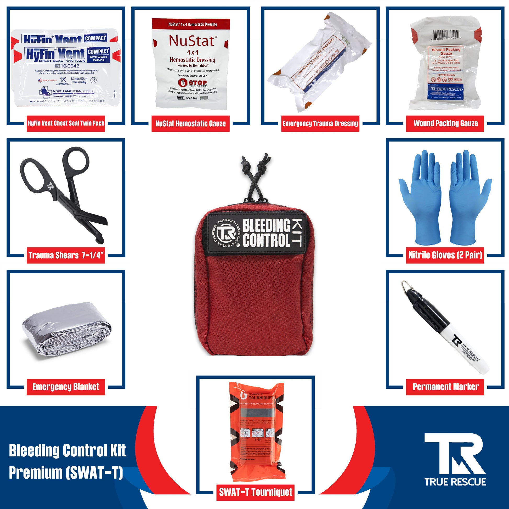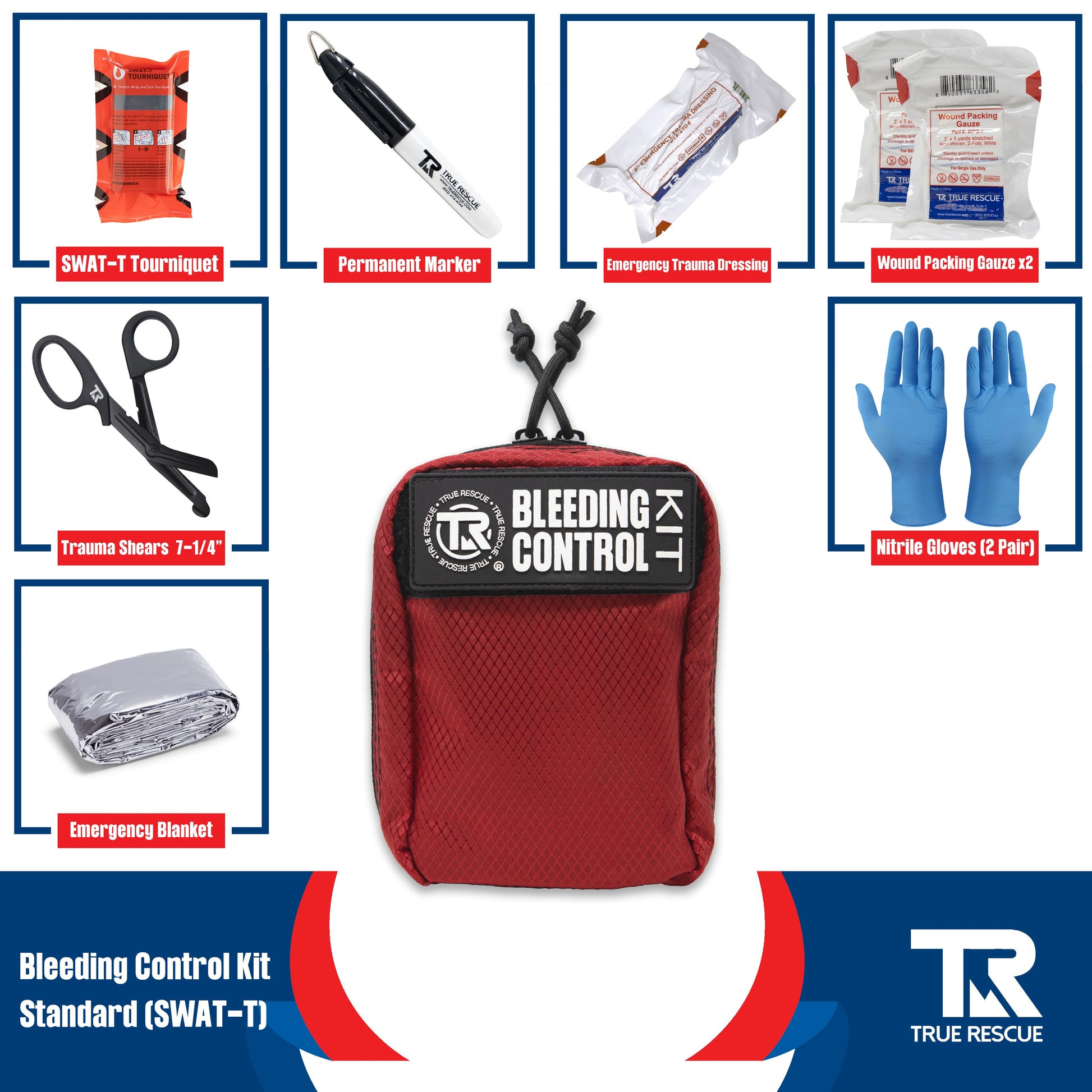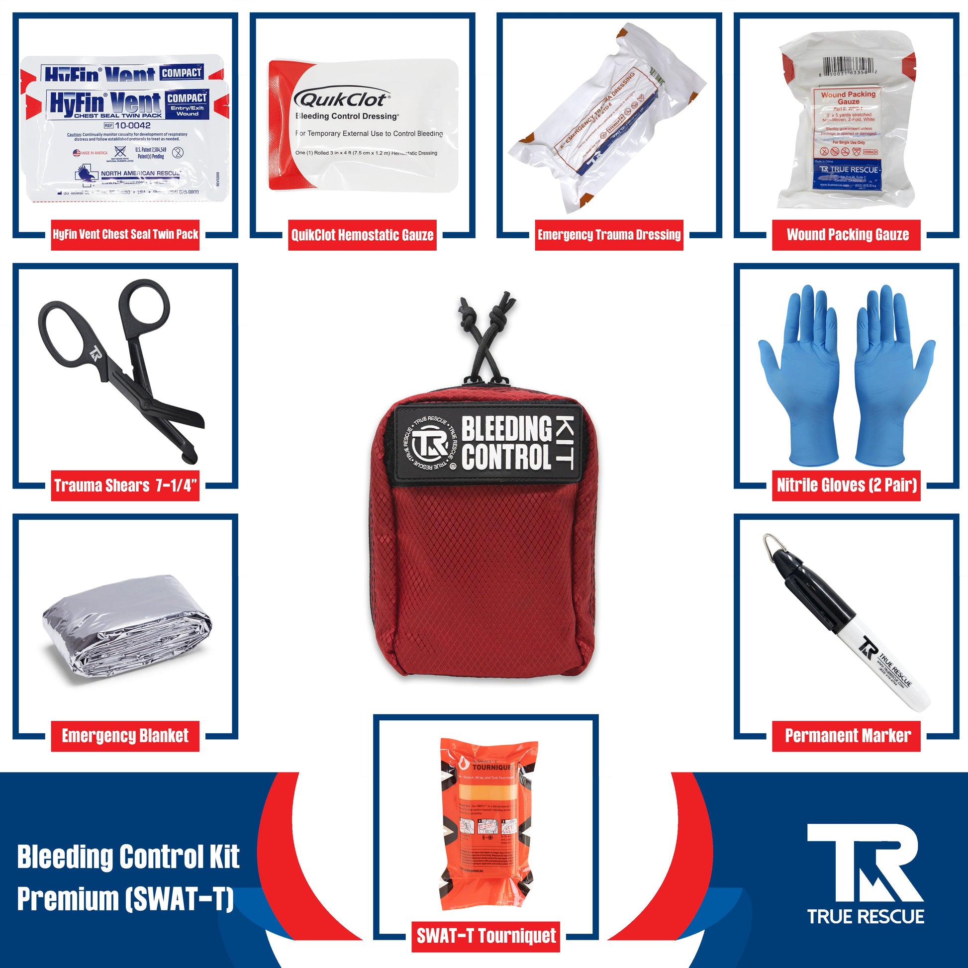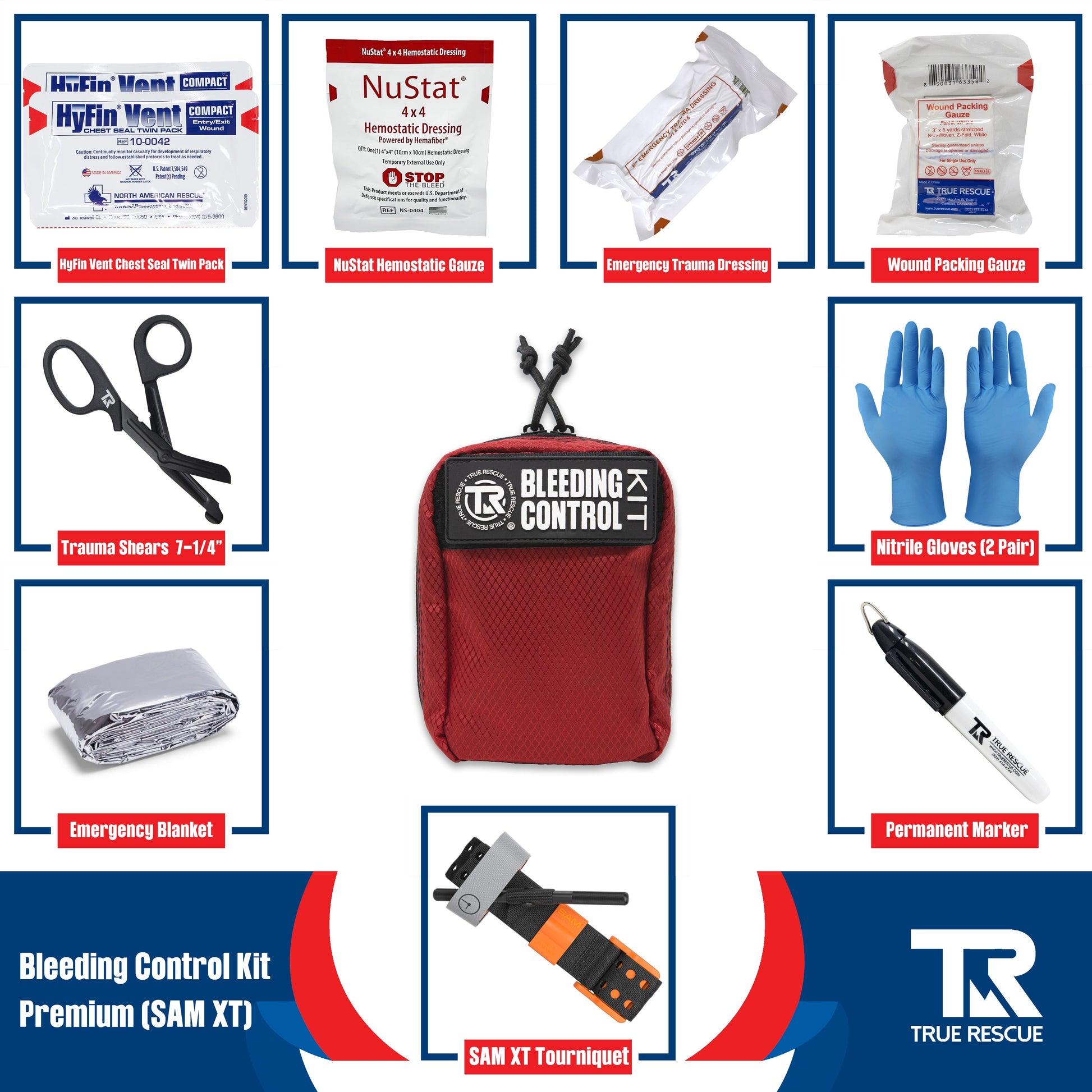 The Bleeding Control Kit by True Rescue® provides the lay responder with battlefield tested tools to help control life threatening traumatic blood loss. Our kits are expertly crafted with input from seasoned first responders.