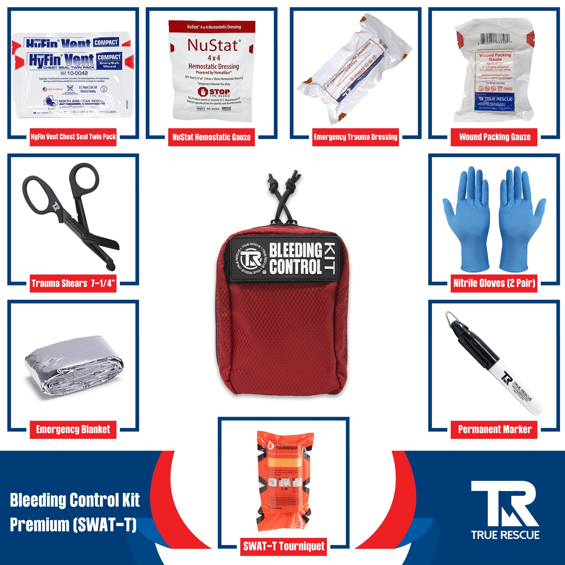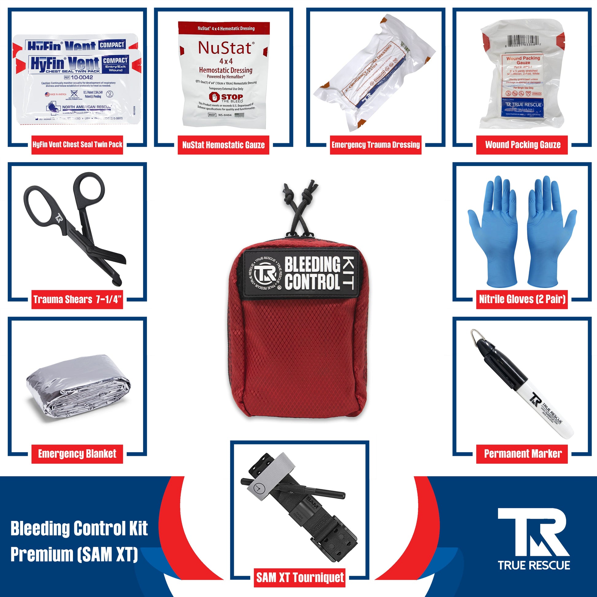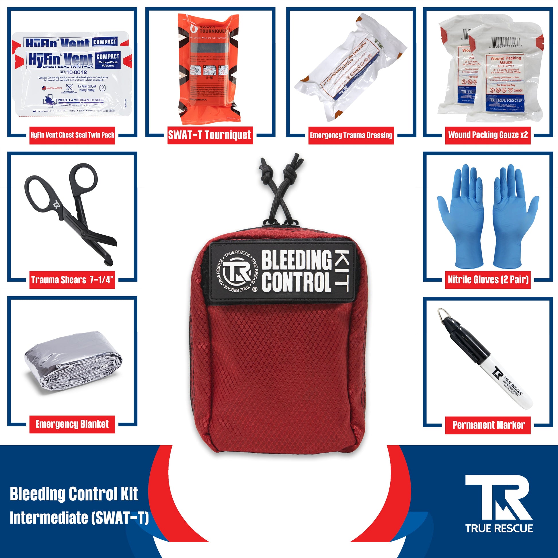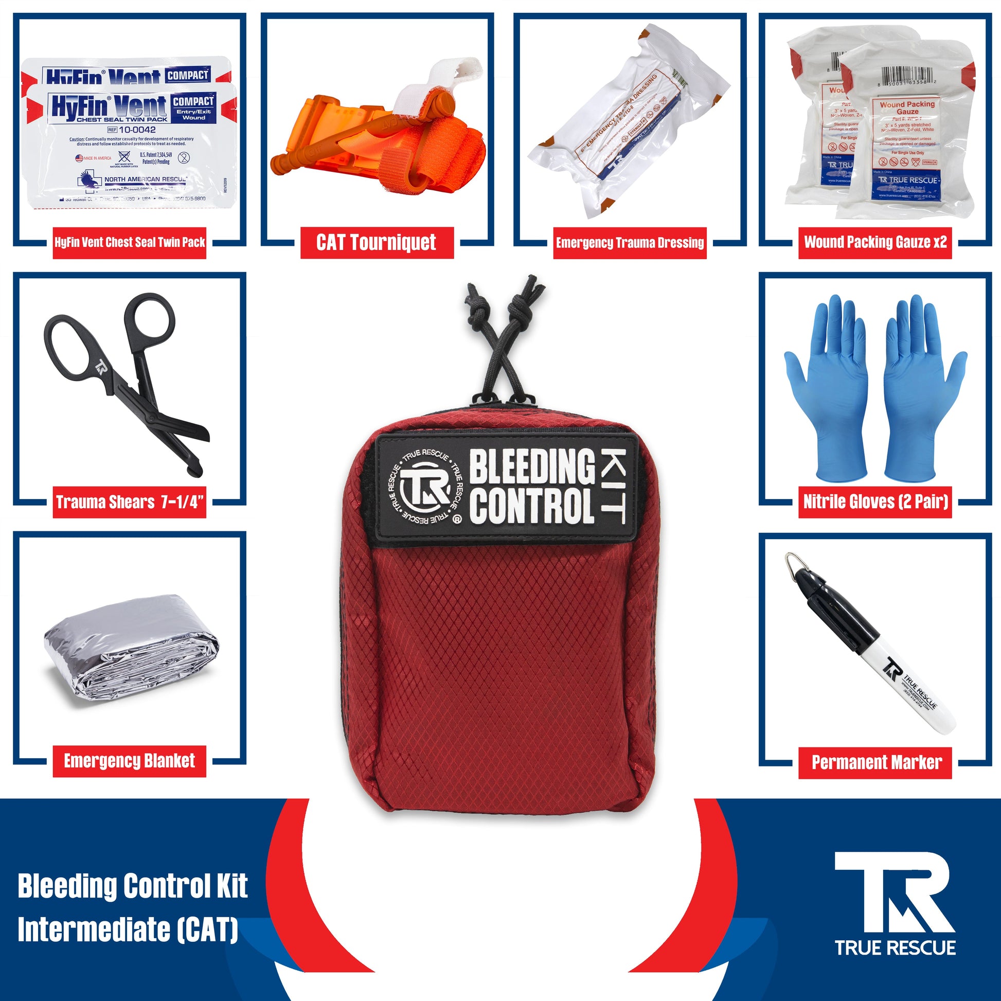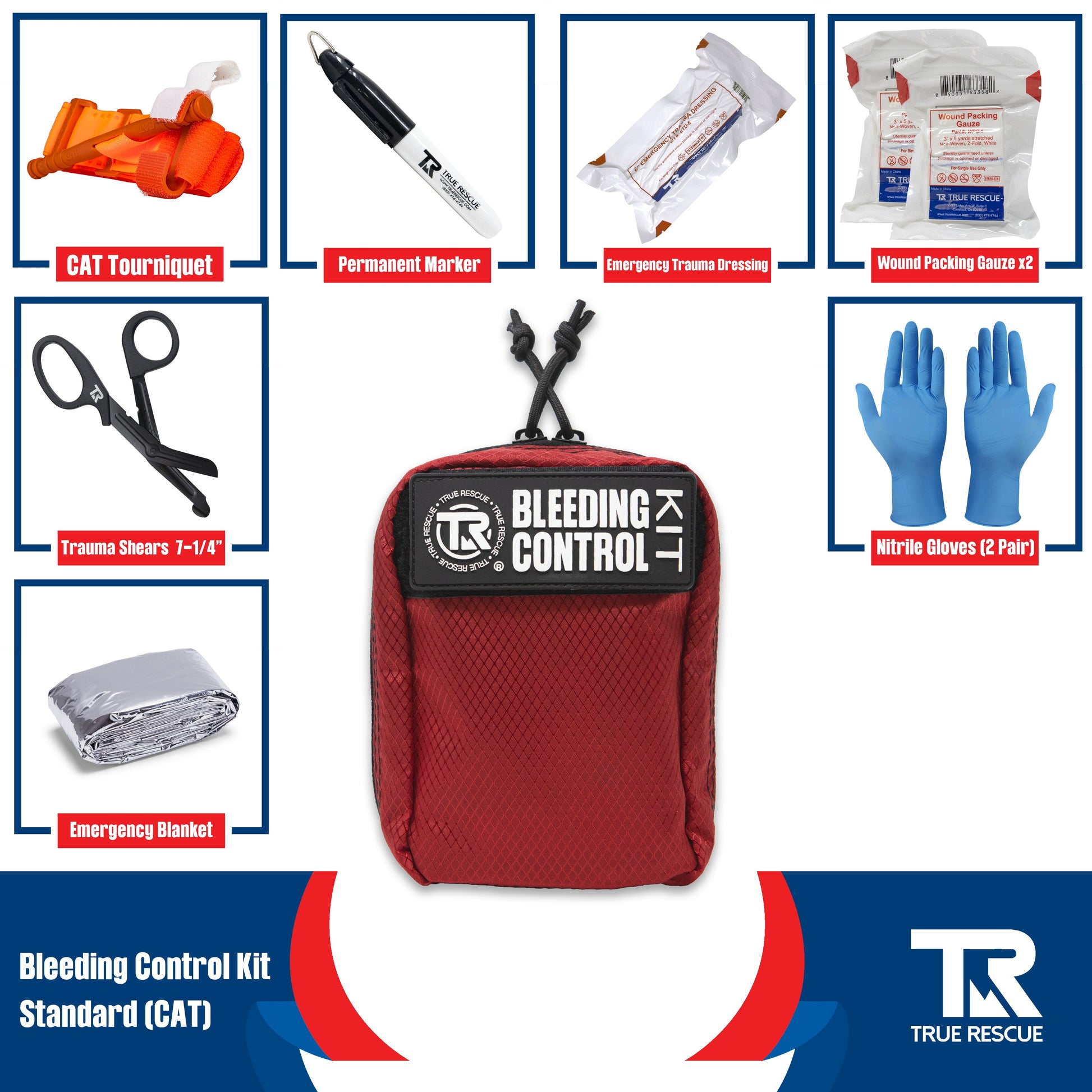 The Bleeding Control Kit by True Rescue® provides the lay responder with battlefield tested tools to help control life threatening traumatic blood loss. Our kits are expertly crafted with input from seasoned first responders.