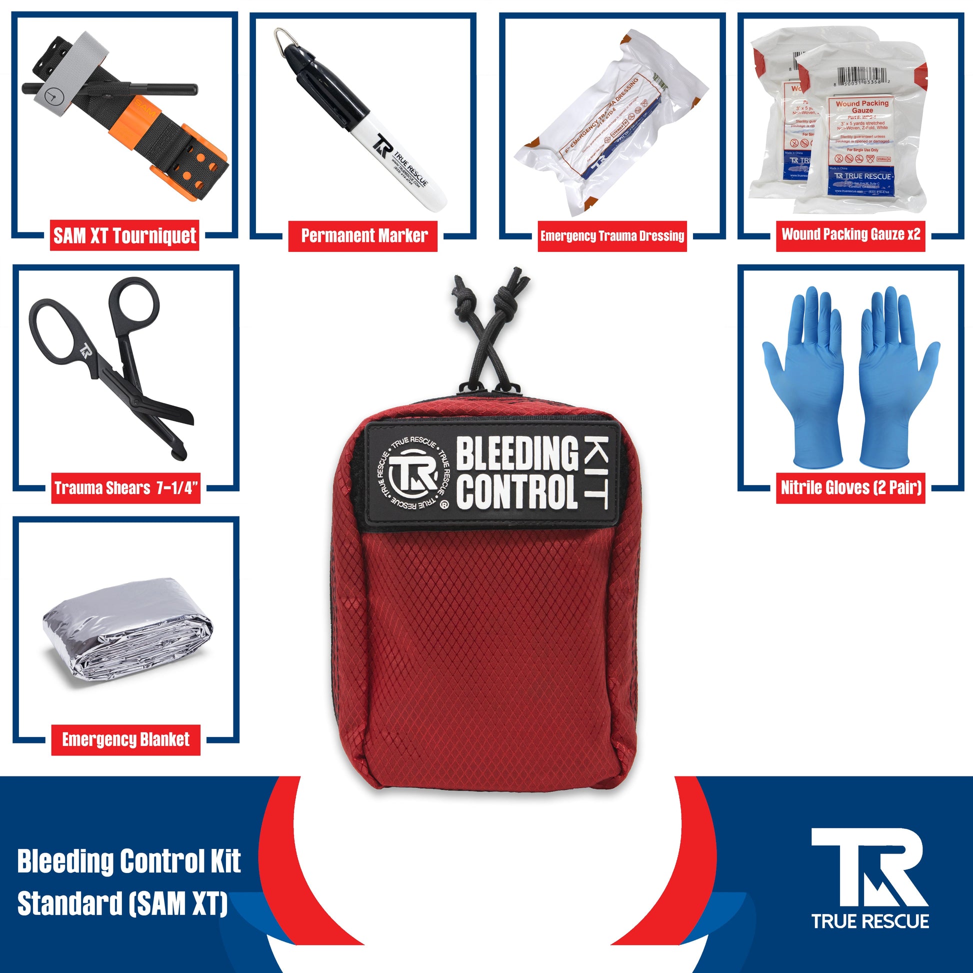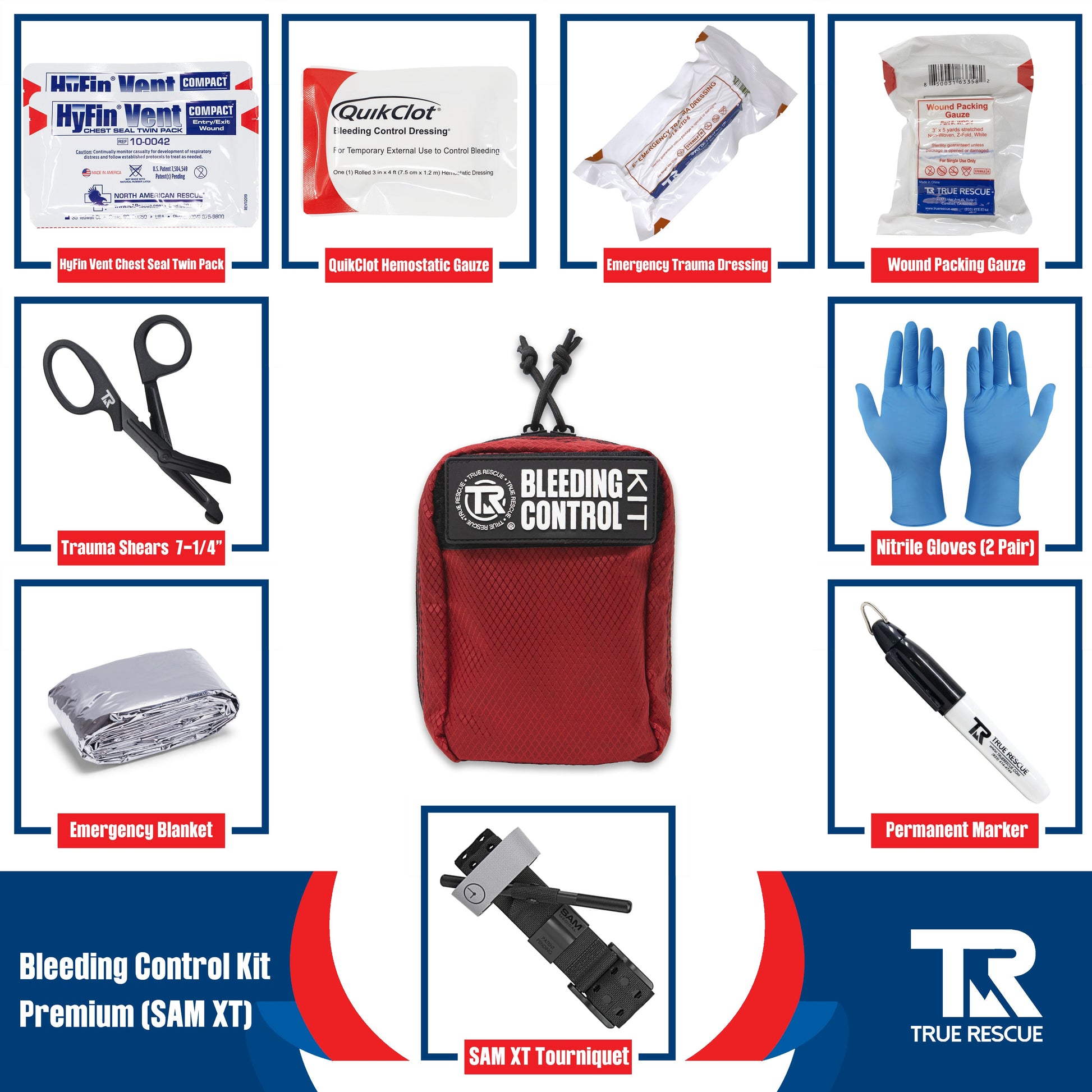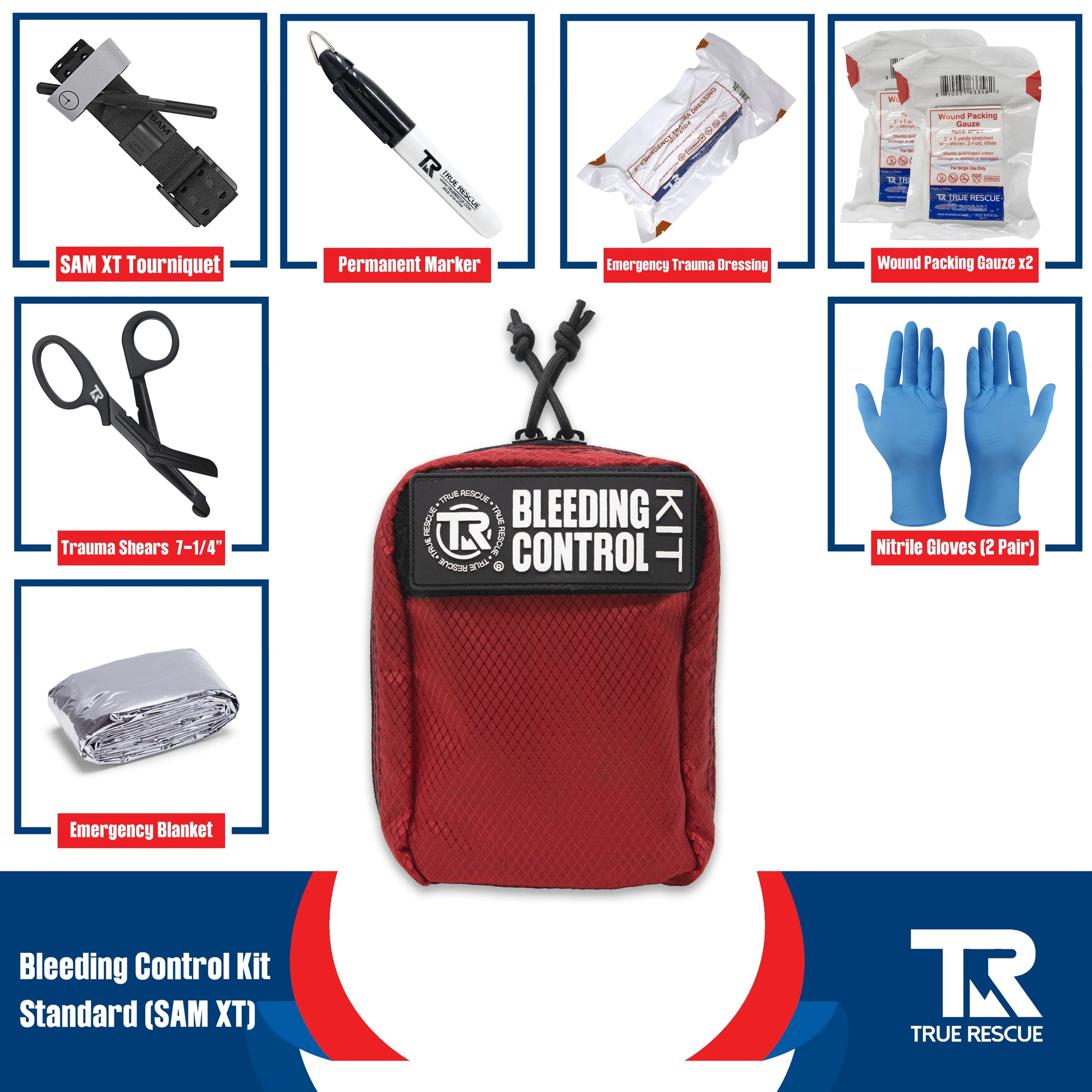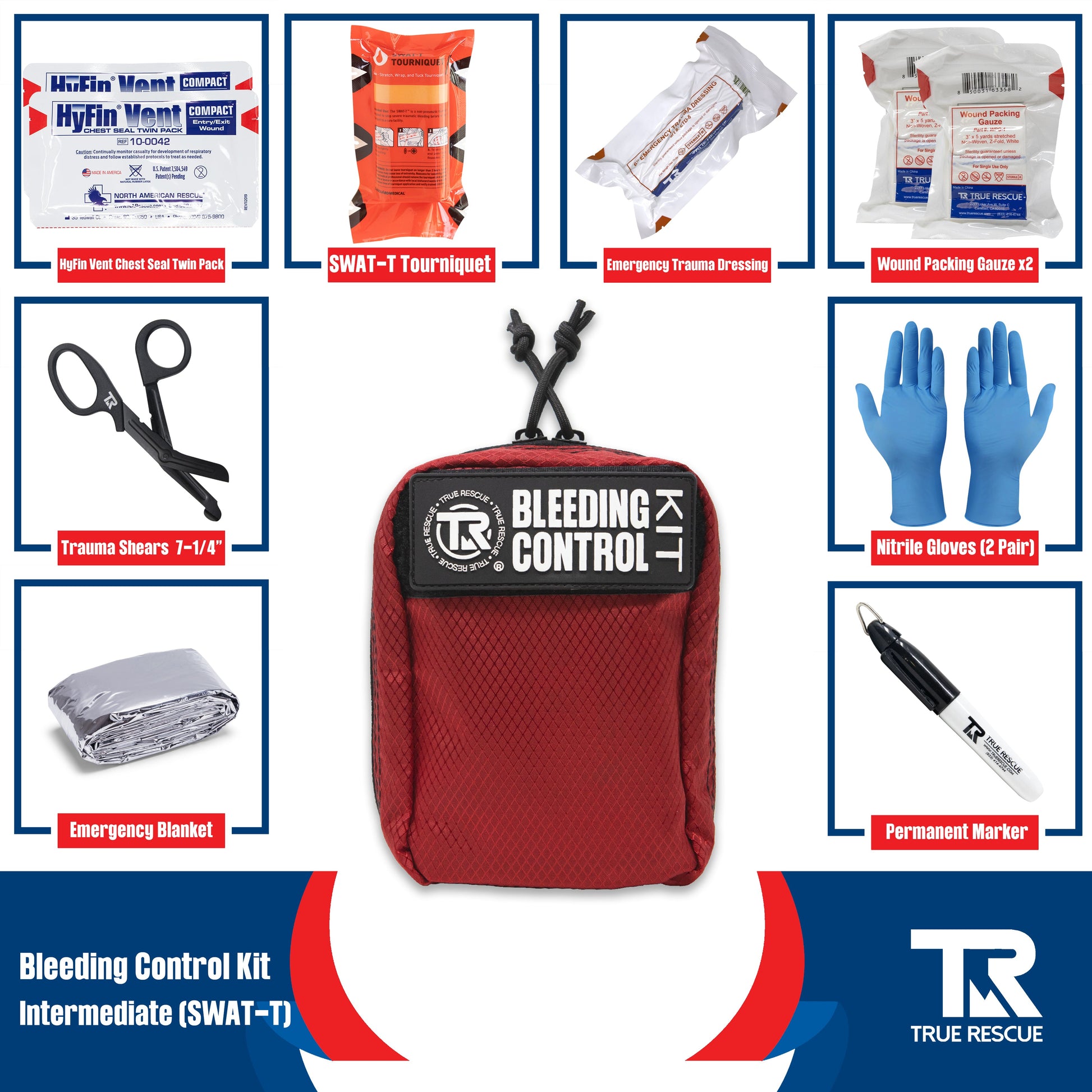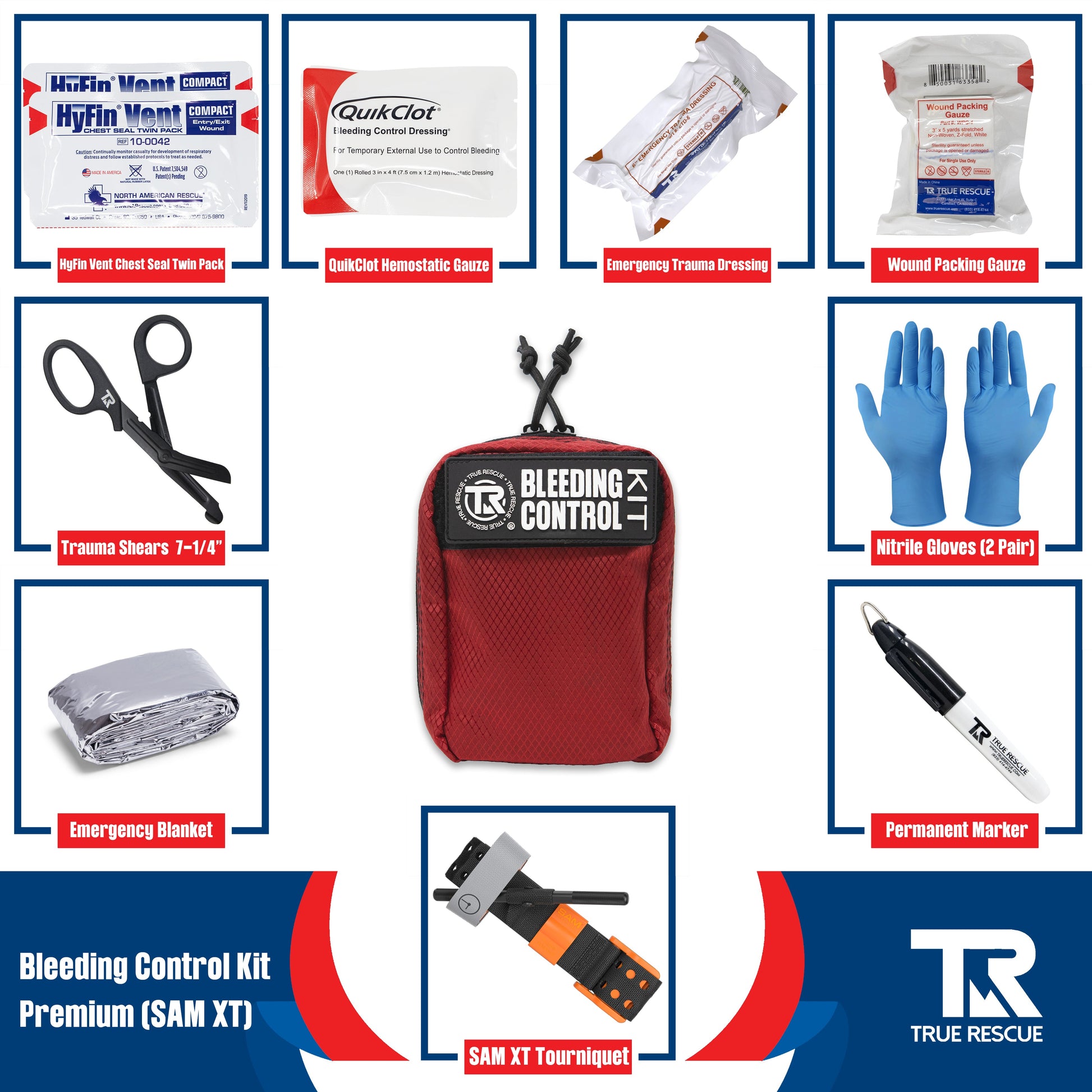 The Bleeding Control Kit by True Rescue® provides the lay responder with battlefield tested tools to help control life threatening traumatic blood loss. Our kits are expertly crafted with input from seasoned first responders.