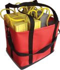 CRIBBING BAG. #890RD Put all of your cribbing at your side. Constructed of 22 oz. reinforced truck vinyl, this bag allows for storage and easy access to cribbing for extrication or stabilization. The molded Tuff Bottom provides an almost indestructible base. A shoulder strap is included. It is available in red and weighs 18 oz. The overall dimensions are 13”L x 17″W x 14″H with an inside area of 3,094 cubic inches.