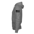- Introducing the Rust & Iron Deck Gun hoodie, designed for optimal performance in the toughest conditions. Crafted with premium materials, this mid weight hoodie boasts stylish logos and a patriotic American flag on the left sleeve. Made from a blend of 80/20 combed ring spun cotton/poly, with a 100% ring spun cotton face and 75/25 combed ring spun cotton/polyester, the hoodie also features a comfortable jersey-lined hood and 2x1 rib knit cuffs and hem. It's the perfect choice for any outdoor enthusiast or professional in need of durable and functional attire.