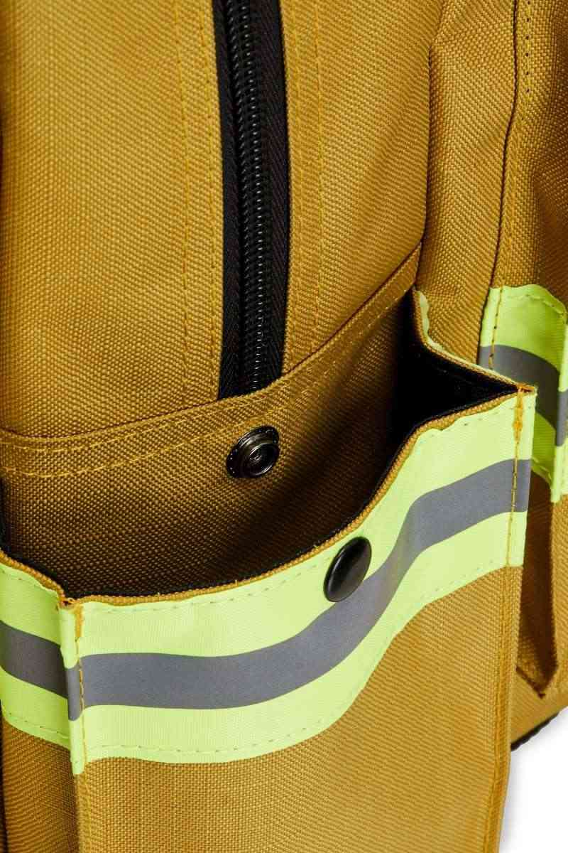 The LINE2design Elite Firefighter Gear Bag measures 27”x17”x13”. The Elite bag features two separate zippered storage pockets on each end, one main center zippered storage compartment for carrying essential and everyday gear and eight smaller storage pockets around all sides of the bag. Yellow reflective trim helps enhance your visibility at night and in low-light conditions.