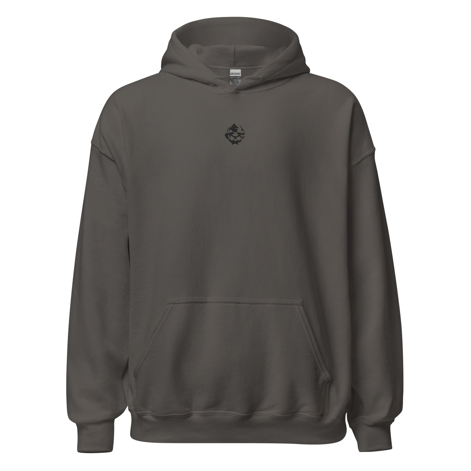This heavyweight hoodie carries our iconic skull—subtly embroidered in black, right where it belongs. No flash, no noise. Just a mark that says you’ve earned it.