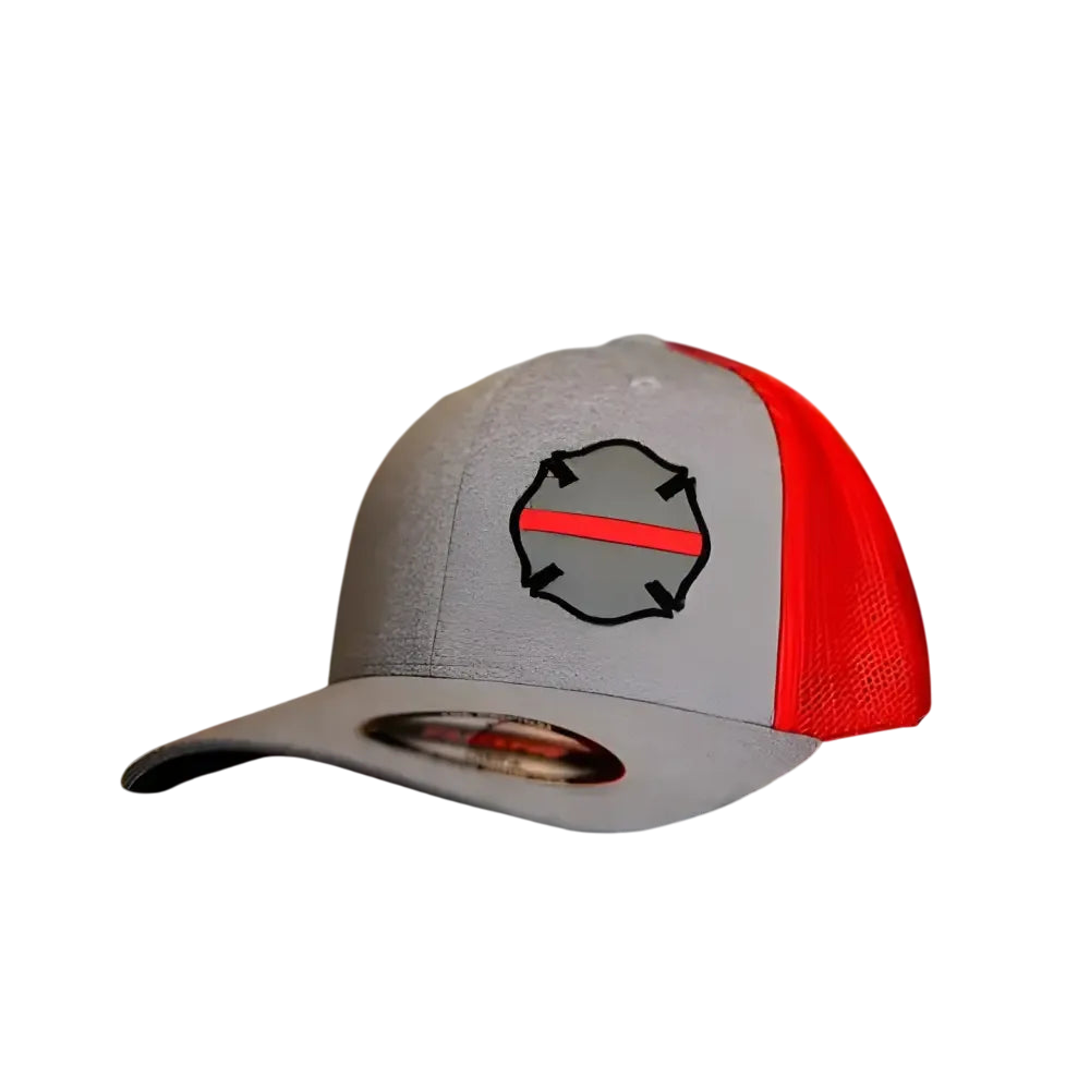 Embrace the boldness of the Thin Red Line and the timeless symbol of the Maltese Cross with Flexfit Y6311 in Heather Grey/Red. Unleash your firefighter spirit.