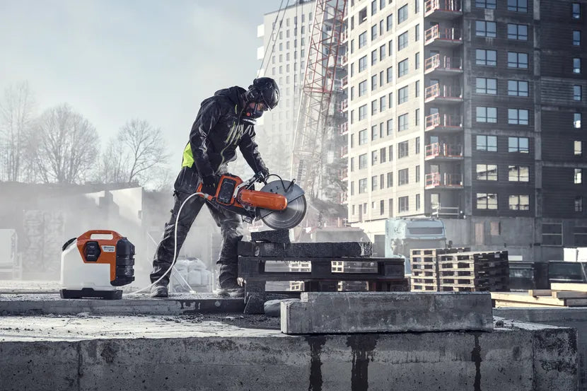 K 1 PACE high power battery cutter has the power and performance you expect from equivalent petrol-powered cutters. Equipped with X-Halt™ brake function for operational safety. Ergonomic and user-friendly with low vibrations, optimally balanced machine and zero CO₂ emissions during use. With built-in connectivity so you can easily monitor machine location, runtime, service intervals and receive wireless updates through FOTA (firmware over the air). Powered by Husqvarna PACE battery system with high power and fast charging for impressive productivity and a well-suited match with our specially designed battery blade range for maximised cutting depth and optimised performance. Suitable for concrete pipes, conrete garden plates, cinder blocks etc.