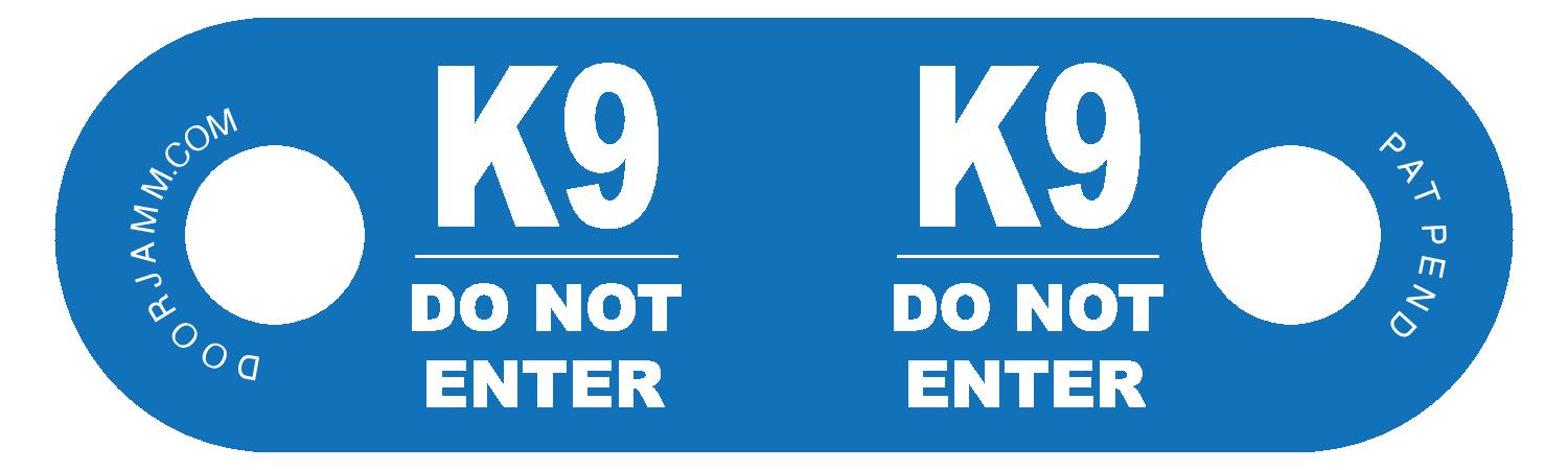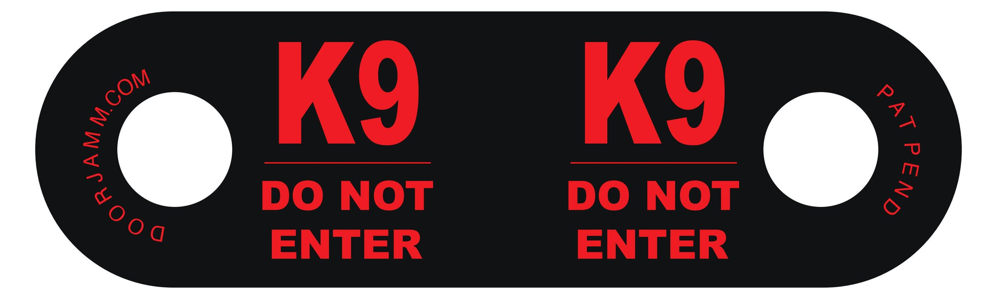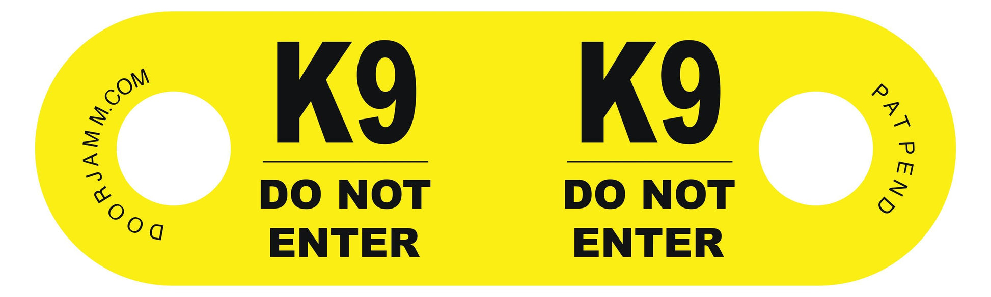 This DoorJamm is clearly marked with "K9 DO NOT ENTER" on both ends on one side.