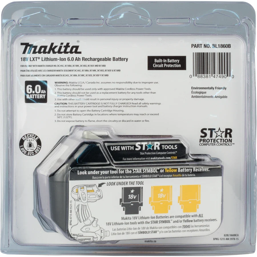 The 18V LXT® 6.0Ah battery is compatible only with Star Protection tools, indicated by the Star Symbol™ and/or Yellow Battery Receiver under the tool. .