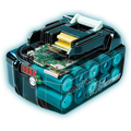 Makita 18V Lithium-Ion batteries resist self-discharge so they’re ready for use even after long periods of storage. The Makita Rapid Optimum Charger (sold separately) is a smart-charging system that communicates with the battery during the charging process to monitor current, voltage and temperature. This advanced charging technology helps optimize battery life and deliver a faster charge. In addition, the Charger has a built-in fan to cool the battery for faster and more efficient charging, even in hot weather conditions.