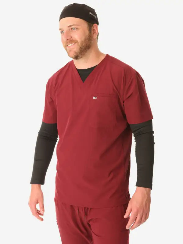 Our Men’s Long-Sleeve Underscrub adds an extra layer and covers your arms without making you feel too warm.