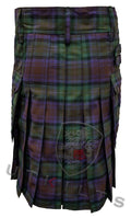 This is our standard utility kilt with a twist. It comes in a poly-viscose tartan material which gives similar colors to wool but can easily be machine washed. Our standard utility kilts have side cargo pockets and adjustable hip straps. Not just those new to wearing a kilt will enjoy this simple, yet rugged design of a utility kilt. It has large sized cargo pockets that will fit the common items a guy wants to carry these days. Pleats are also sewn down to make sure you always get that perfect look, no matter the activity. It also has two sets of snaps to make sure you have a solid, comfortable fit. Don't let anyone tell you that great quality can't come with a low price on a utility kilt. The UTK Standard Utility Tartan Kilt gives you amazing quality, low price, and a fabulous look. You won't find anything like this anywhere else!